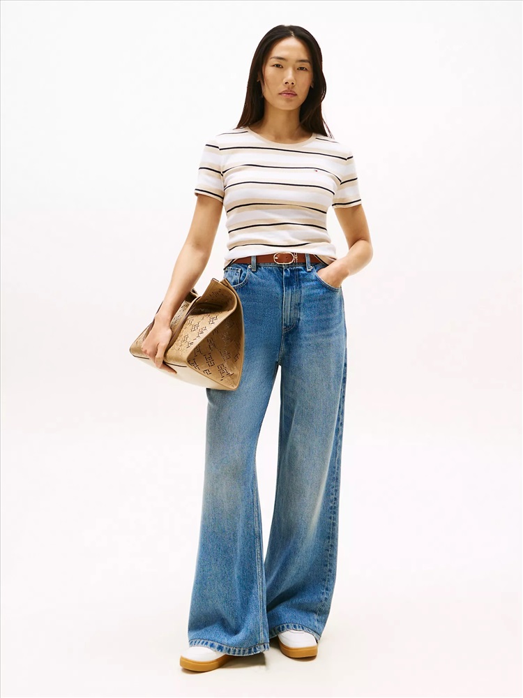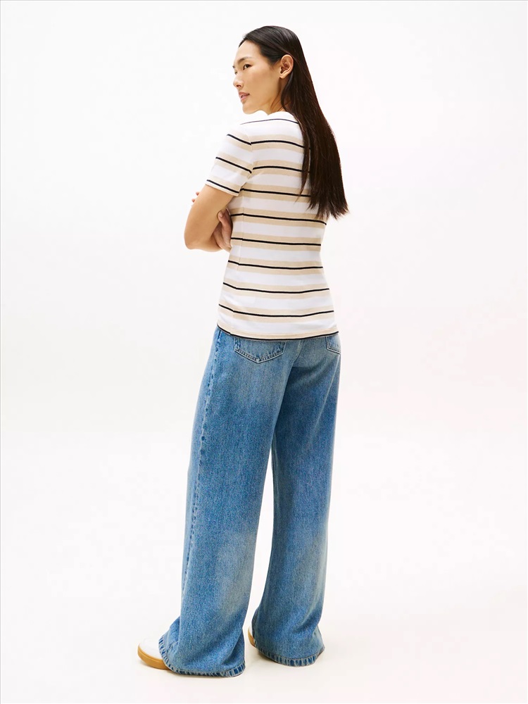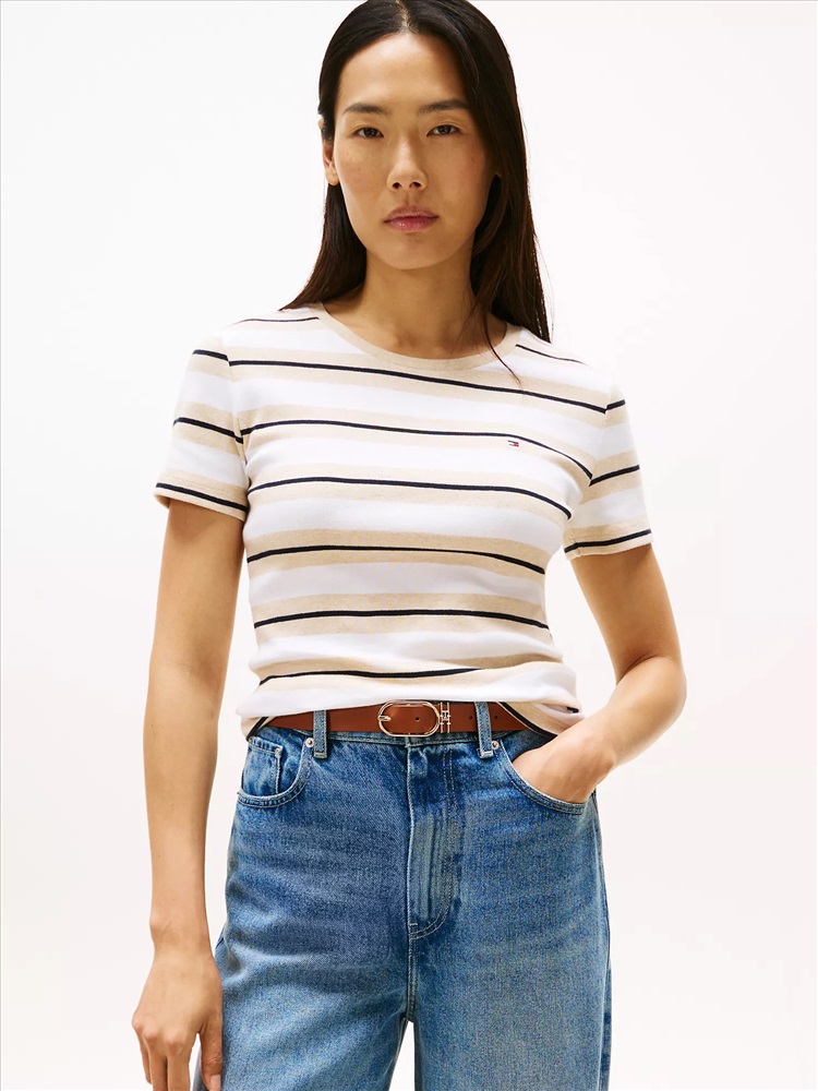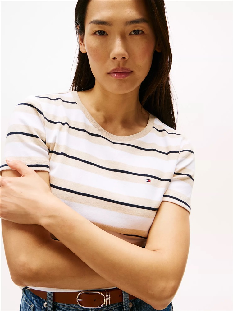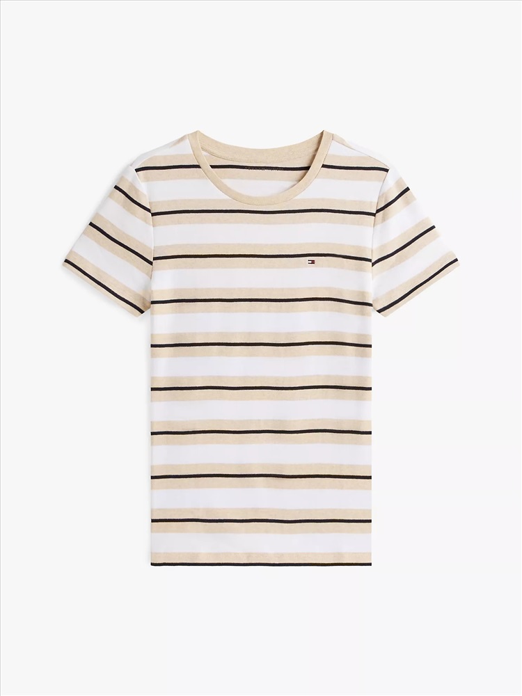 Tommy Hilfiger women's T-shirt. Made from soft, comfortable, medium-weight cotton, our stripe tee is designed to fit your form.