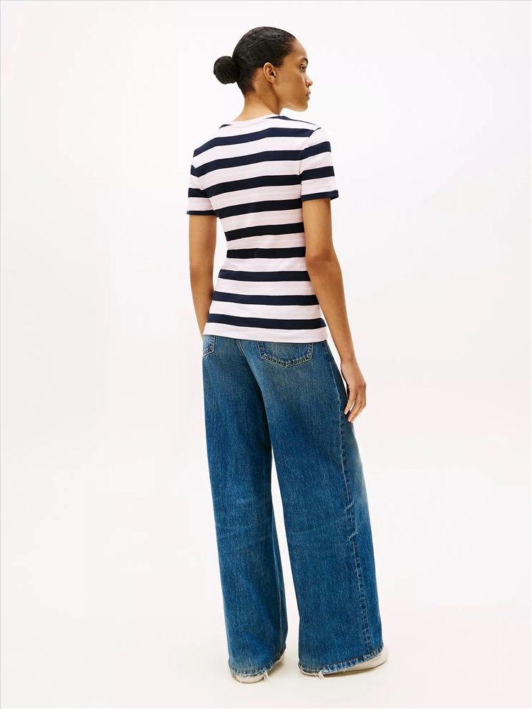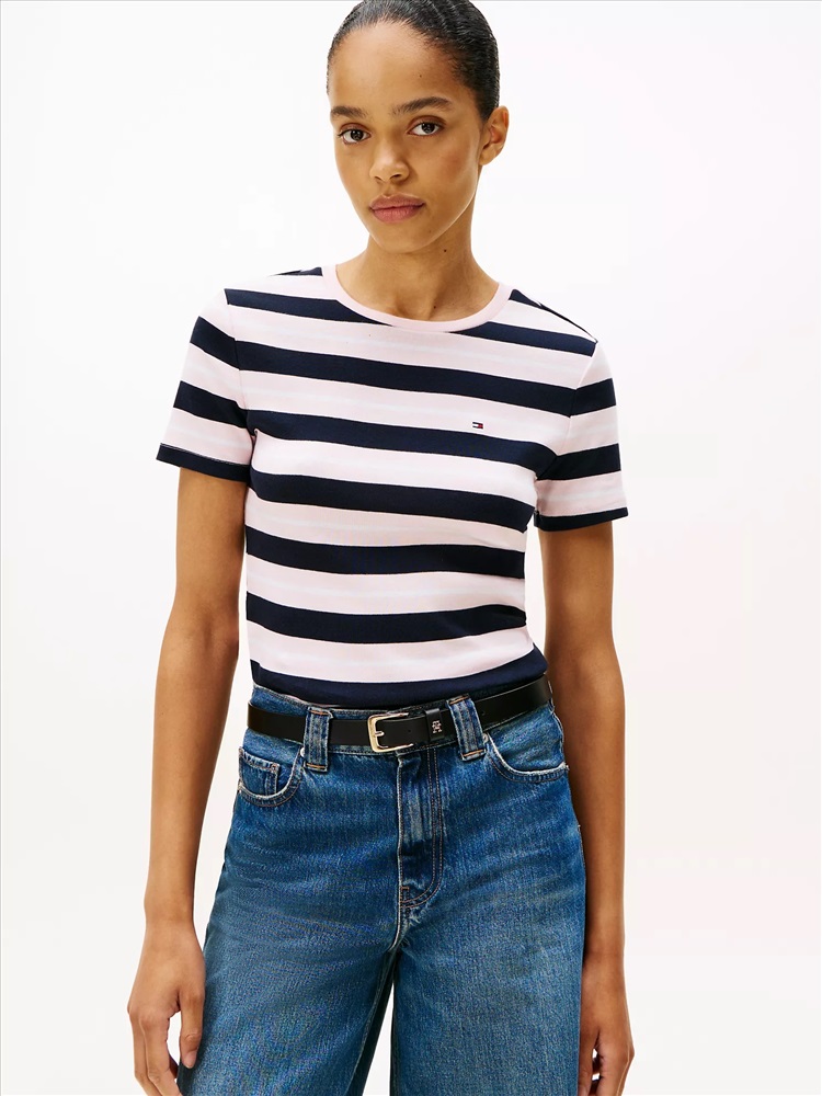 Tommy Hilfiger women's T-shirt. Made from soft, comfortable, medium-weight cotton, our stripe tee is designed to fit your form.