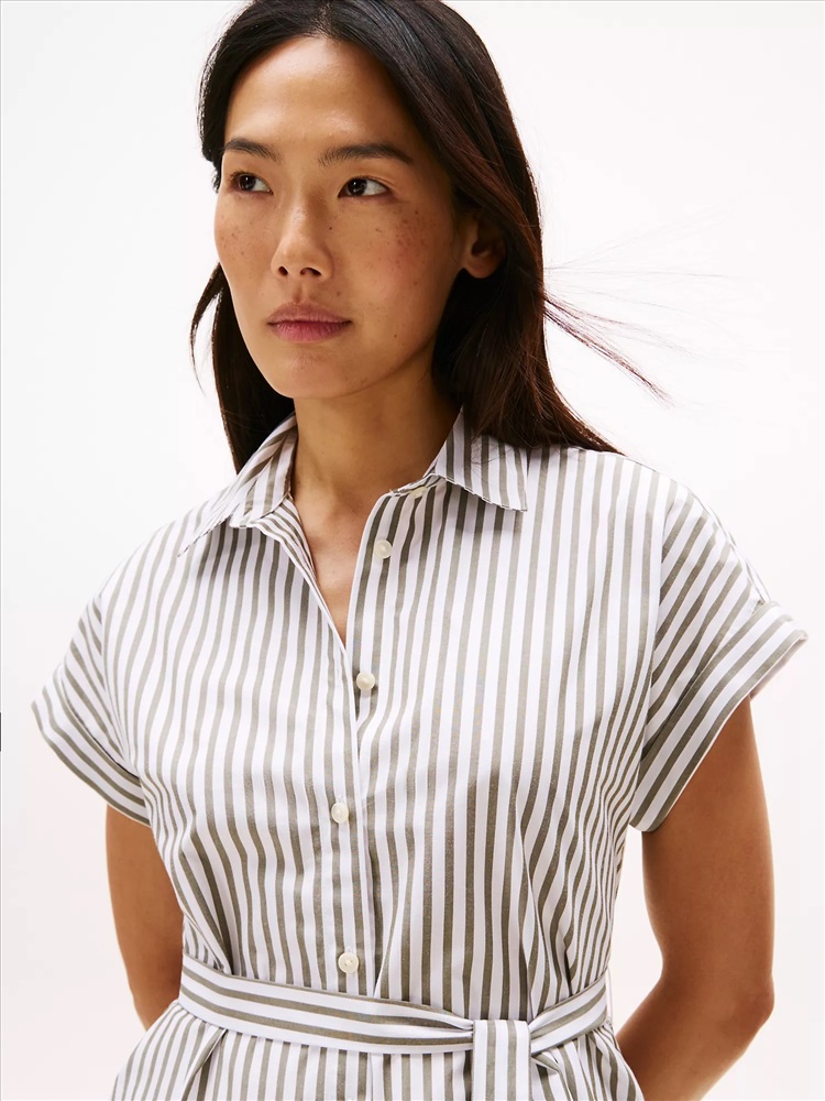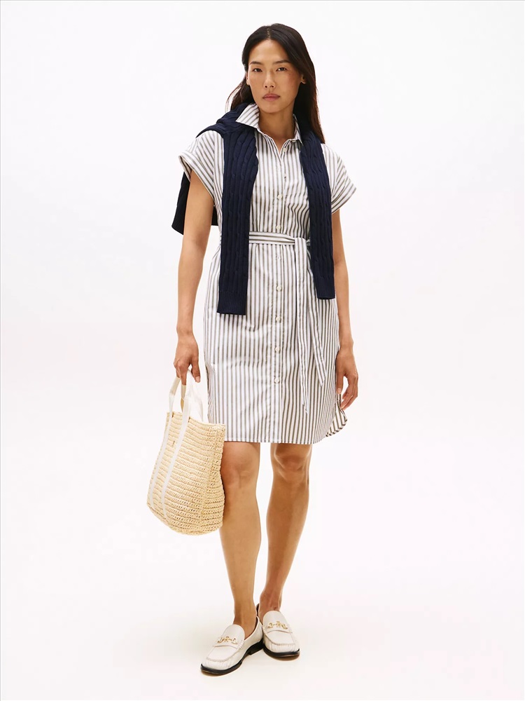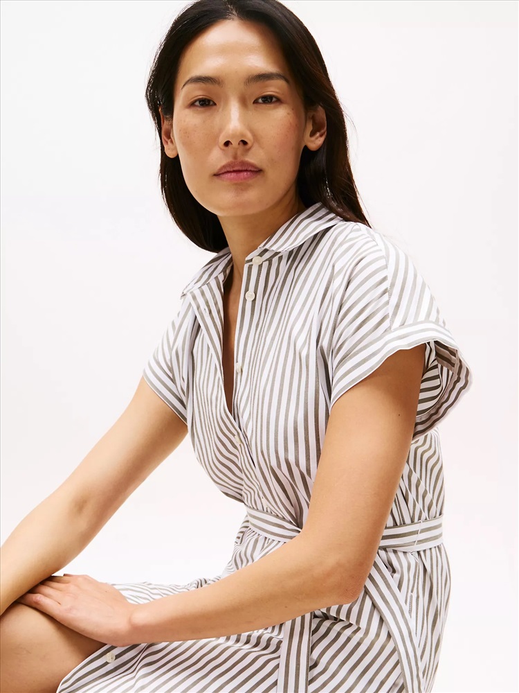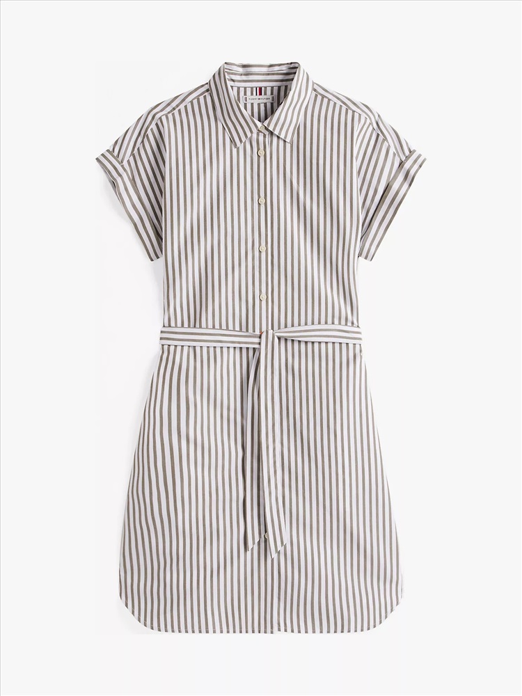 Tommy Hilfiger women's dress. For work and weekends, the versatile shirtdress is a wardrobe must. This version is designed from lightweight cotton poplin and features dolman sleeves and a self-tie belt.