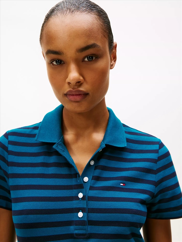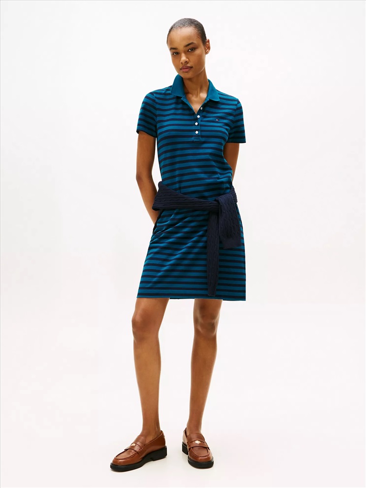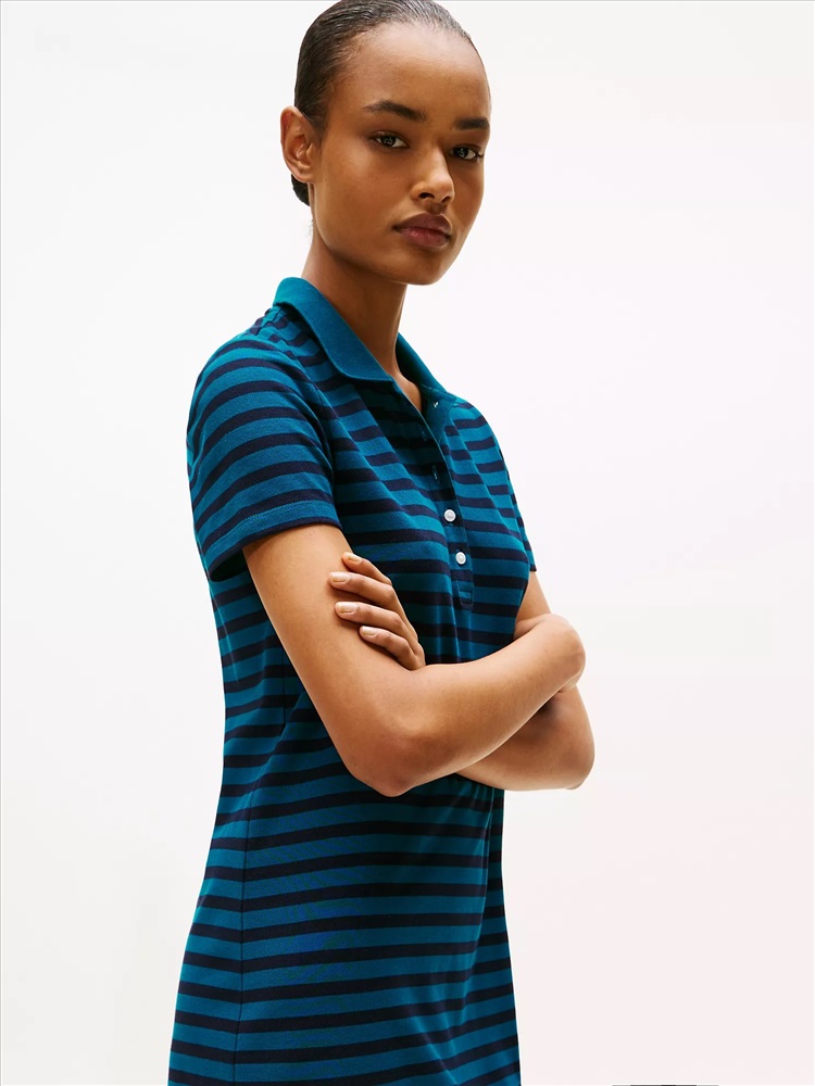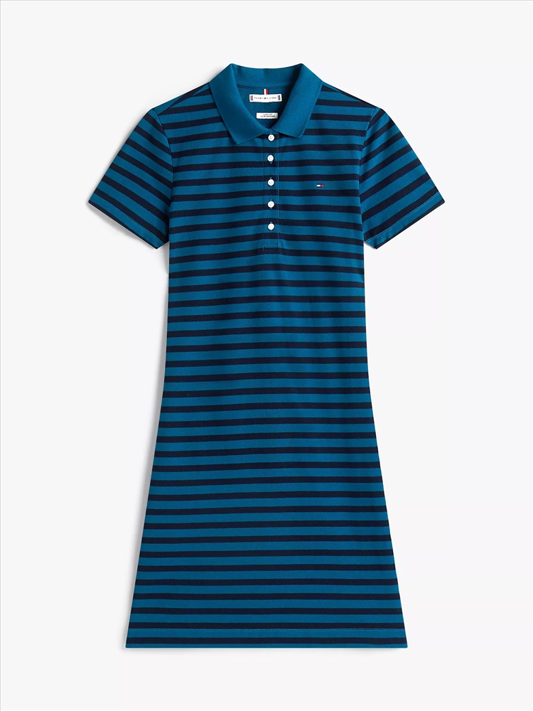 Tommy Hilfiger women's dress. Everything you love about our form-fitting polos (the precise cut, flattering drape) now in a dress. Styled in bold stripes and spun from stretch cotton for the perfect contouring fit.