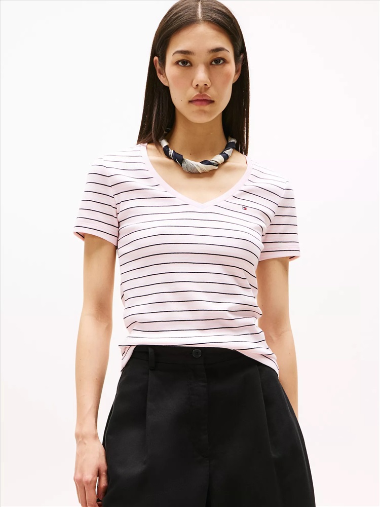 Tommy Hilfiger women's T-shirt. Made from soft, medium-weight cotton, our Favorite Tees are designed to fit your form. Another reason to love them? They layer just as easily under a blazer as they do a zip hoodie.