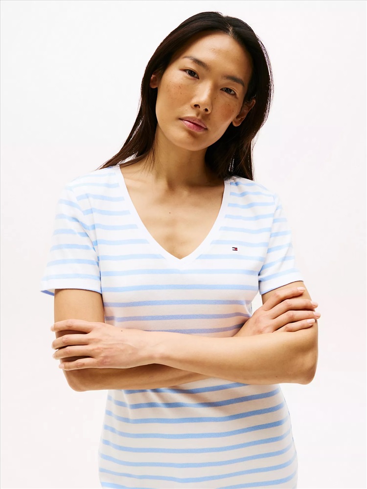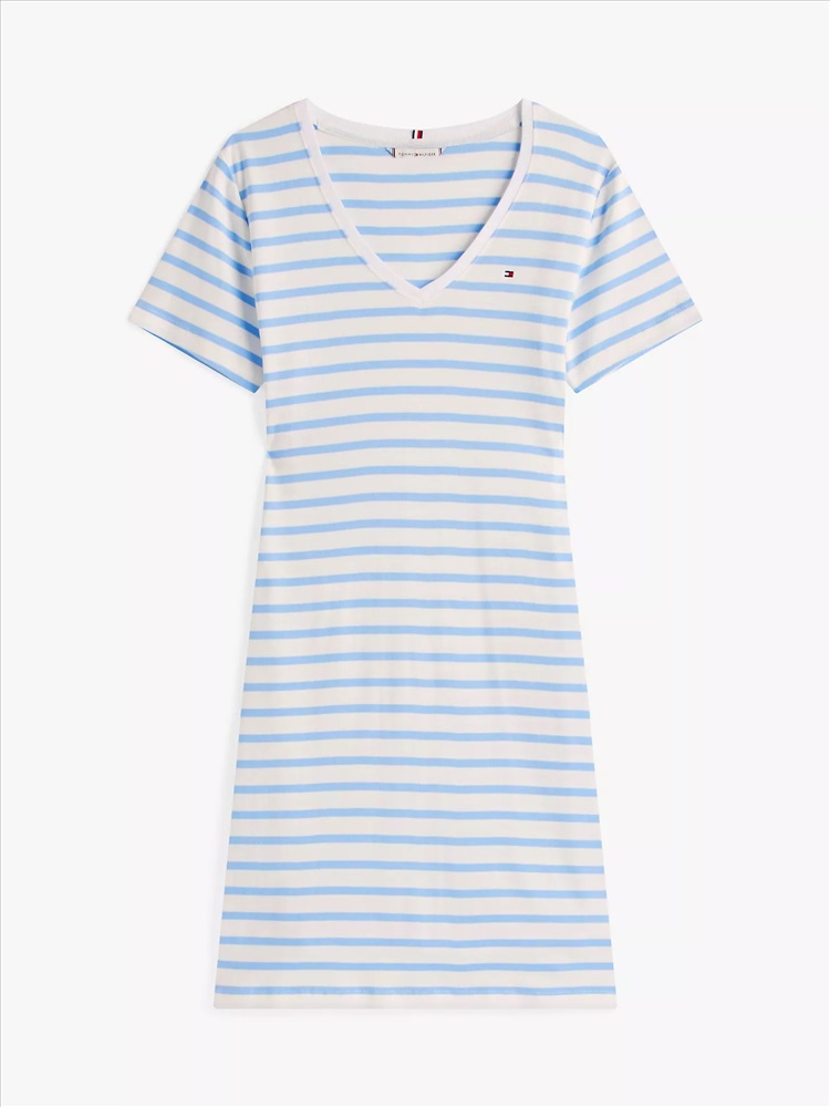 Tommy Hilfiger women's dress. So simple yet so versatile — our lightweight V-neck T-shirt dress is your one-and-done casual wardrobe solution. Made from soft, ribbed cotton, it's super comfortable.