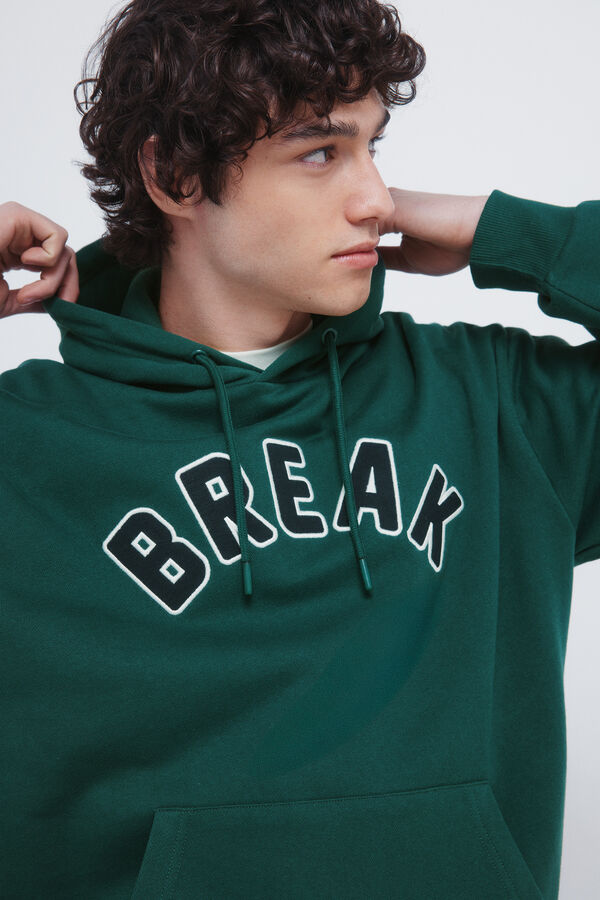 Sudadera capucha loose fit en algodón perchado. Cordón, canalé en bajo y puños, bolsillo canguro y parche en el pecho.