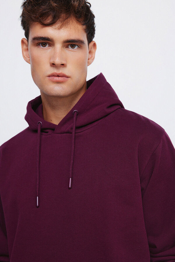 Sudadera capucha básica cerrada en tejido perchado. Bolsillo canguro y sudadera de tejido doble.