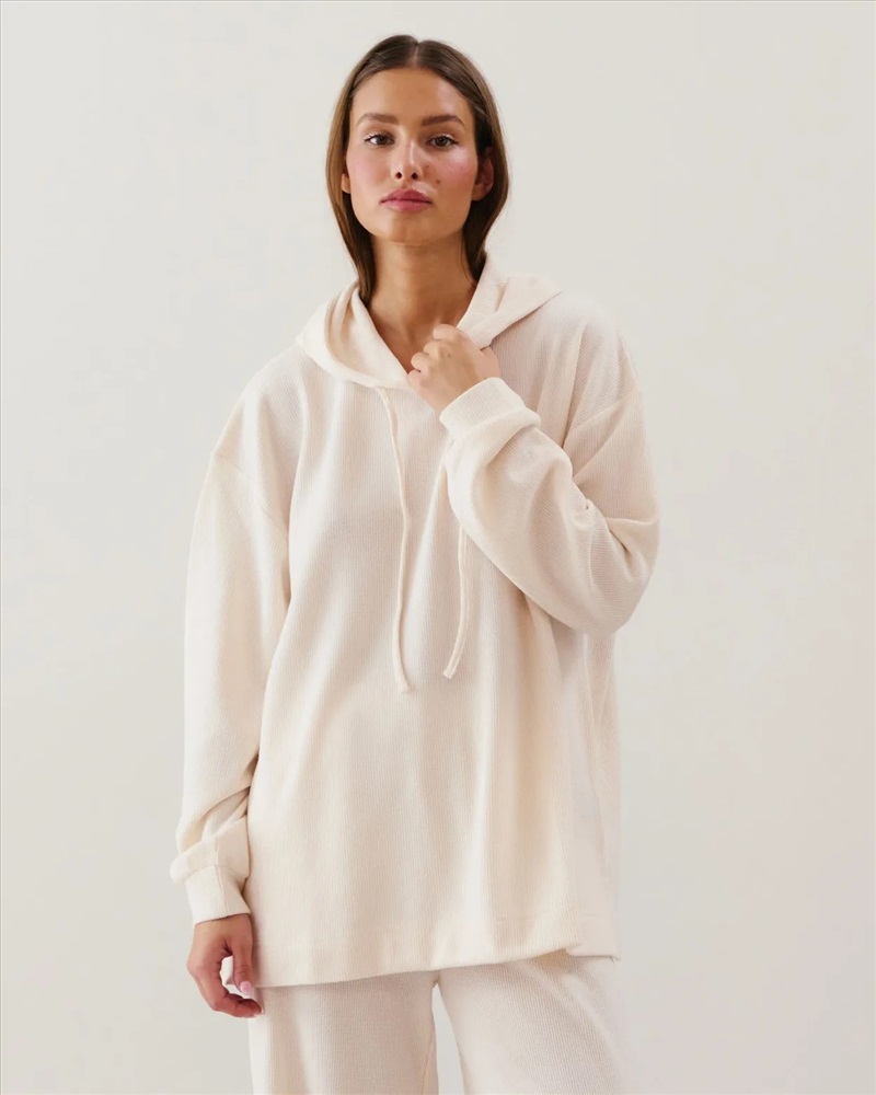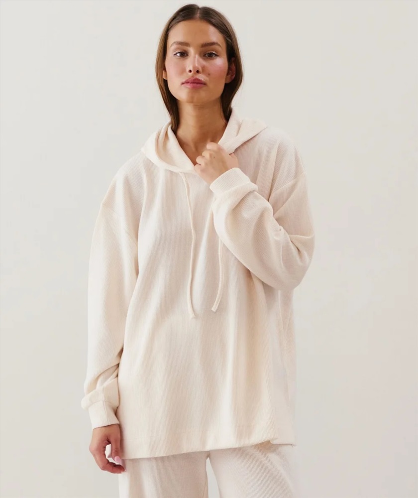 Ten encantará la sudadera con capucha COMFYLIZ, de corte holgado y confeccionada con un tejido cepillado ultracómodo que proporciona una suavidad y calidez incomparables. Nos encantan sus puños ajustados y el cordón regulable para ceñir la capucha. Puedes combinarlo con el pantalón a juego de la misma colección para pasar un día 100 % chill con tu atuendo más cómodo. Además, forma parte de nuestra gama We Care.