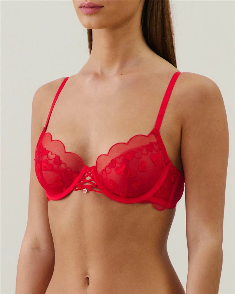 - Sujetador HEARTLOVIZ - Color: rojo - Balconette - Malla - Bordado Referencia: HEARTLOVIZ-CORBEILLE Комментарии к товару