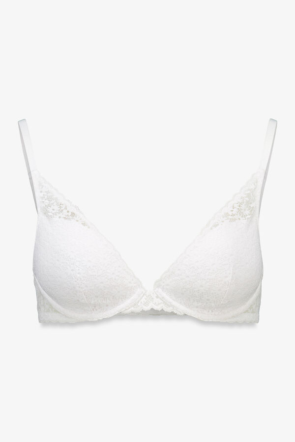 Sujetador BEAUTIFUL con relleno y aro interno. Escote halter y tejido de encaje floral que aporta elegancia y comodidad. Ideal para looks versátiles y sofisticados.