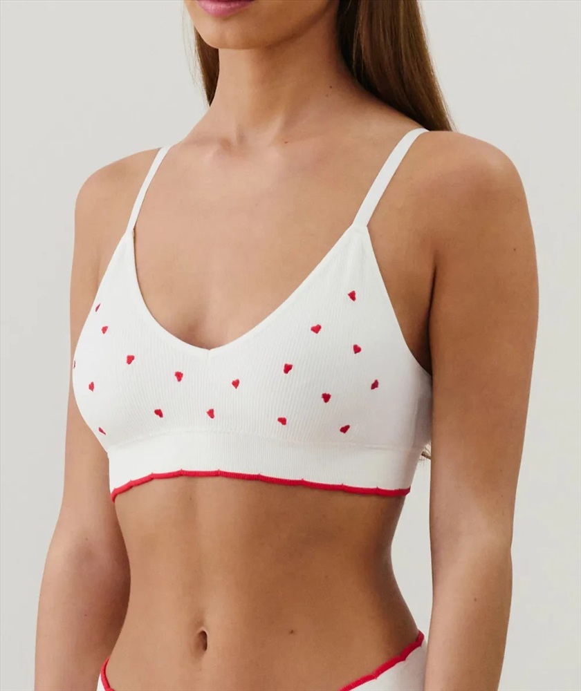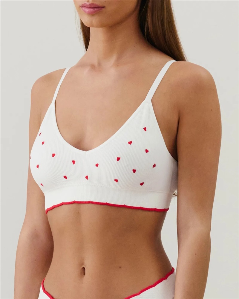 Enamorate de este bralette BRODCOEURIZ triangular sin costuras ultra comodo. Con su efecto acanalado y sus finos tirantes, ¡lo adoptarás con losojos cerrados! Nos encantan sus bordados de corazones, perfectos para celebrar San Valentin.