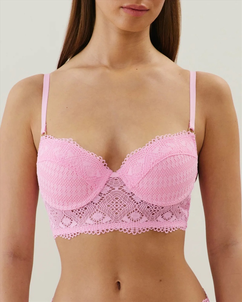 Descubre DESERTIZ, un sujetador bustier push-up de encaje delicado que combina feminidad y comodidad. Su corte elegante se adapta a la silueta con ligereza, ofreciendo un soporte sutil mientras realza las curvas. Disponible en un rosa suave para un toque femenino, se adapta a todos los gustos. Para un look completo, combínalo con la braguita cheeky a juego.