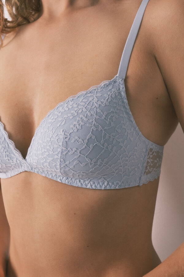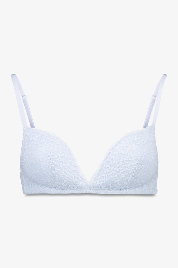 Sujetador triangular CHARMING, con relleno y sin aro, para quienes buscan comodidad sin renunciar a la sujeción. Confeccionado en tejido de encaje, ofrece un look femenino y sensual.