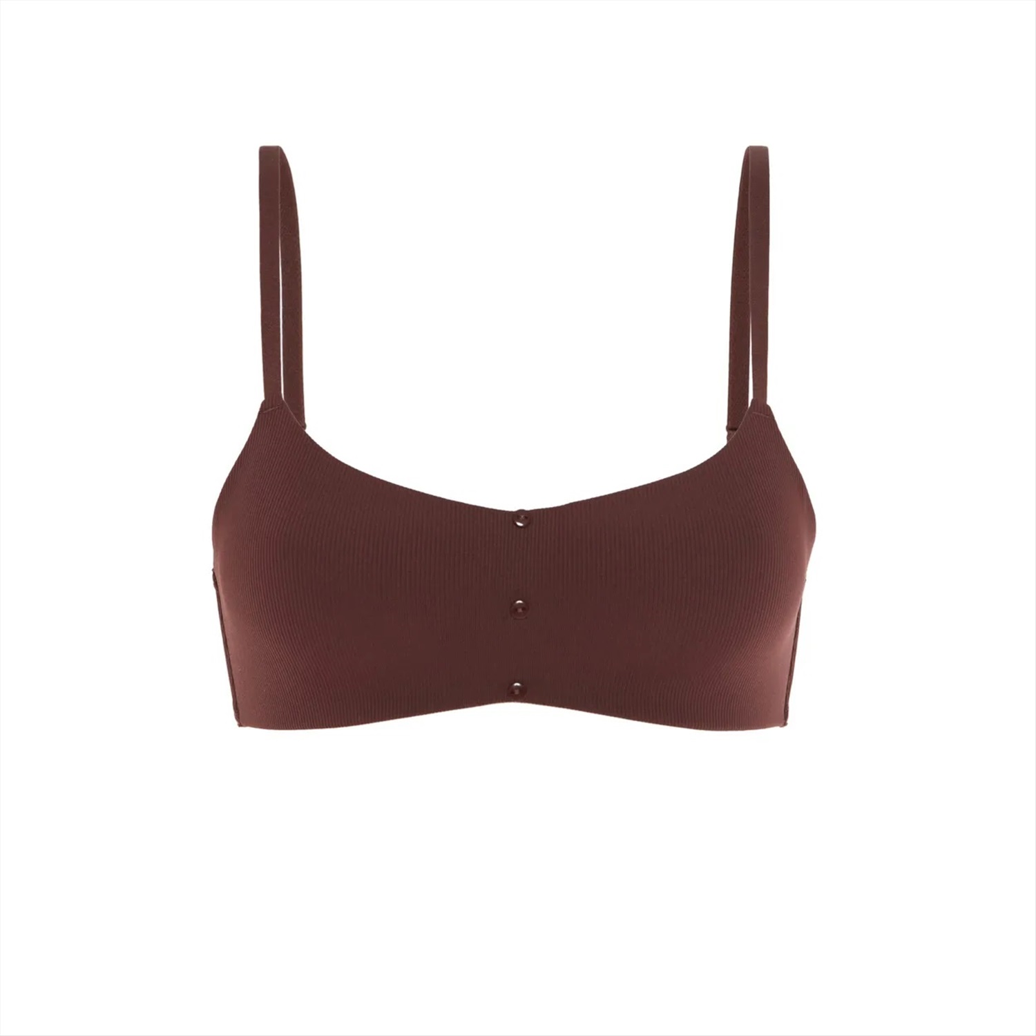 Descubre nuestro sujetador con push-up TEENRIBIZ AMPLI. Este clásico de tirantes finos y escote redondo vuelve en color marrón oscuro para convertirse en un básico para tu fondo de armario. Además, forma parte de nuestra gama We care.