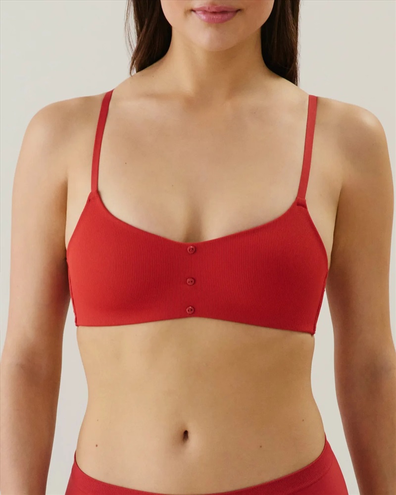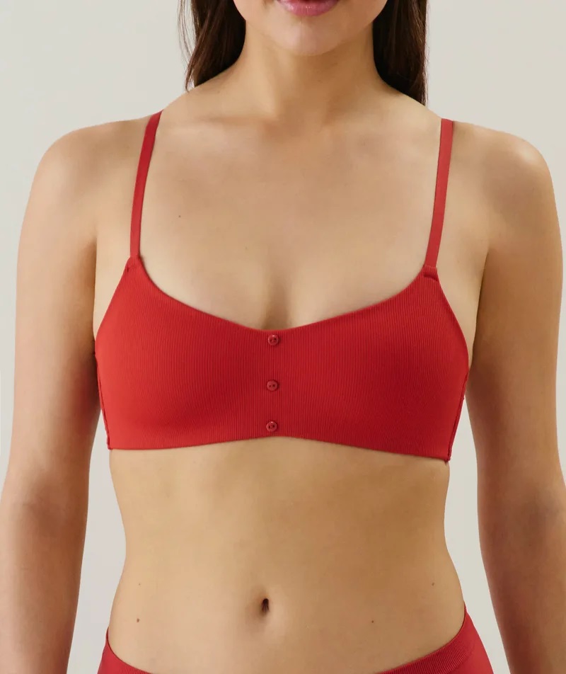 Descubre nuestro sujetador deportivo con relleno TEERIBIZ AMPLI. Con sus finos tirantes y cuello redondo, este gran clásico vuelve en carmín, un básico imprescindible en tu armario. Un plus: forma parte de nuestra gama We care.