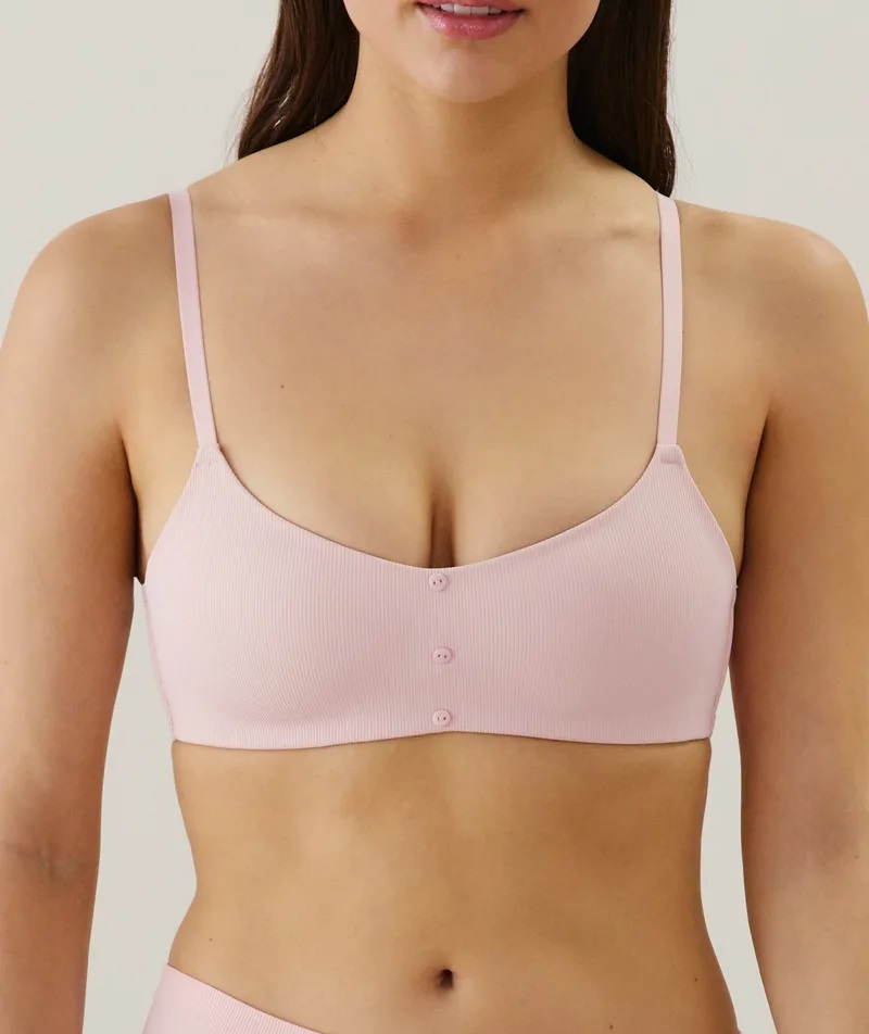 Descubre nuestro sujetador deportivo con relleno TEERIBIZ AMPLI. Con sus finos tirantes y cuello redondo, este gran clásico vuelve en rosa, un básico imprescindible en tu armario. Un plus: forma parte de nuestra gama We care.