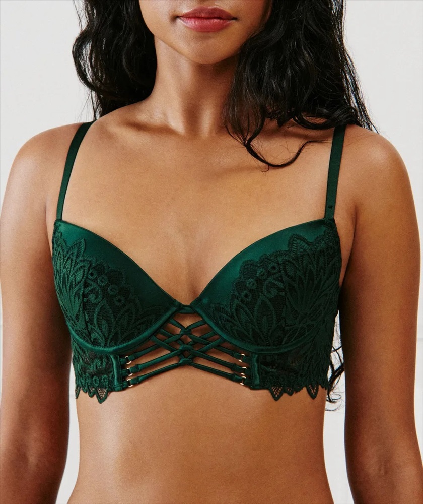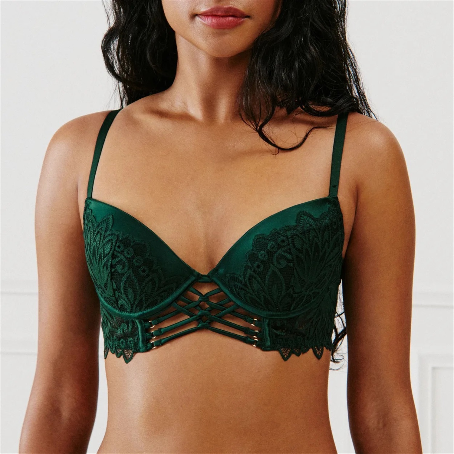 \n- Sujetador MILOIZ \n- Color: verde abeto \n- Encaje \n- Se puede combinar con el tanga de la misma colección \n- We Care \nModelo: MILOIZ-PUSH \n Комментарии к товару