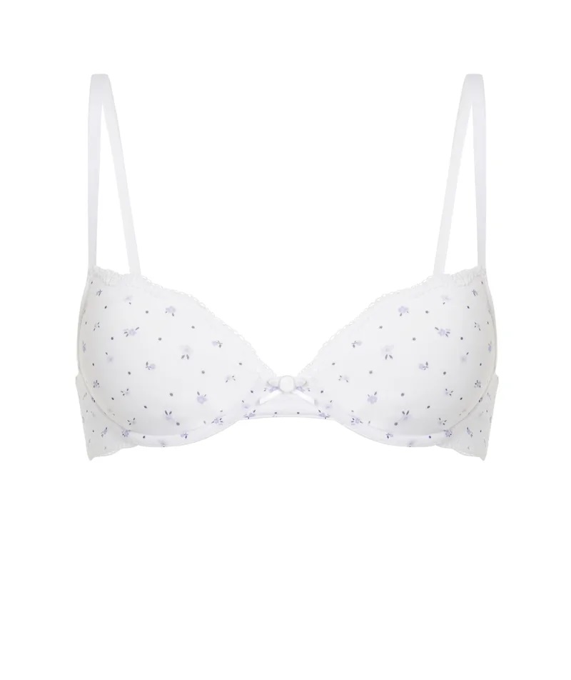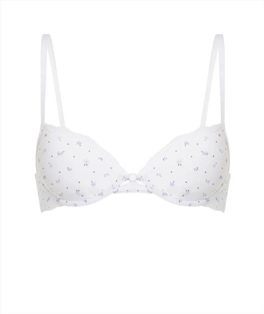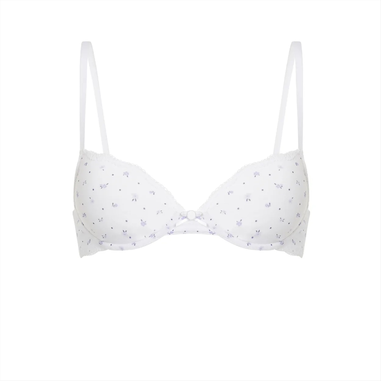 Descubre COMFIZ PRINTIZ en pointelle estampado con un bonito lazo en la parte delantera. Disponible desde 75A hasta 90B. Con su copa fina y su aro suave (sin aro metálico), es el primer sujetador ideal. Además: forma parte de nuestra gama We care.