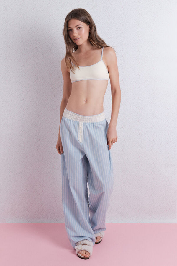 Sujetador top con copas de quita y pon, además con tirantes multiposición. Confeccionado en algodón de canalé con detalle de vivo a contraste, con el logo multiposicionado de HI&BYE.