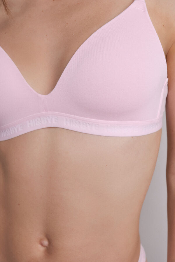 Sujetador triangular con foam fijo. Confeccionado en algodón con estructura de canalé. Goma elástica bajo pecho con logo de la marca efecto Jacquard.