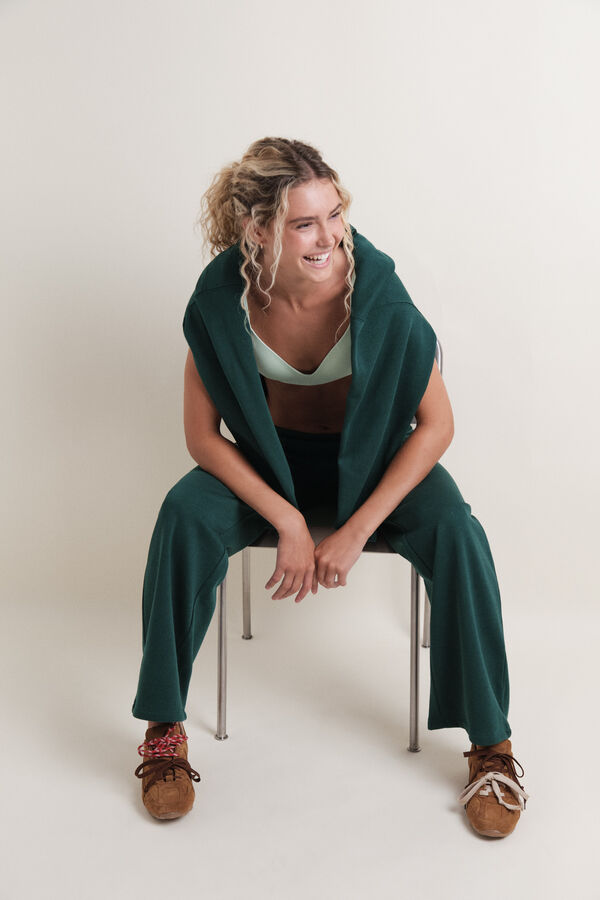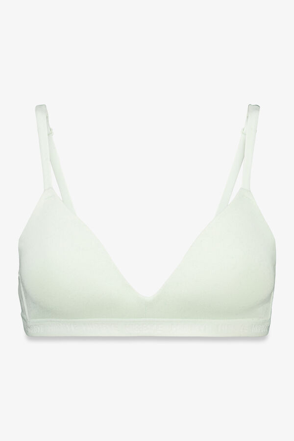 Sujetador triangular con foam fijo. Confeccionado en algodón con estructura de canalé. Goma elástica bajo pecho con logo de la marca efecto Jacquard.