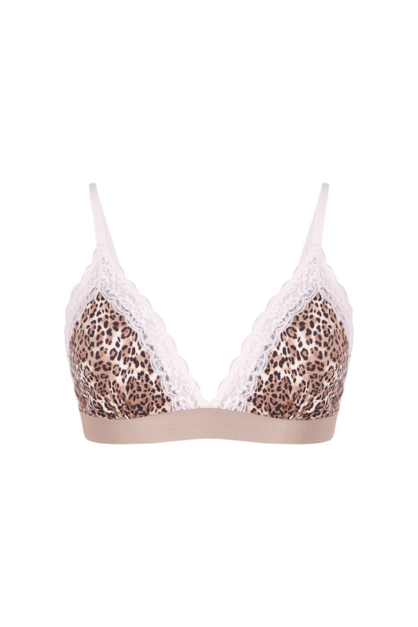 Sujetador triangular NATURAL sin relleno ni aro. Confeccionado en tejido de microfibra con detalle de encaje a contraste, brindando comodidad y sujeción natural. Ideal para quienes buscan ligereza y estilo.