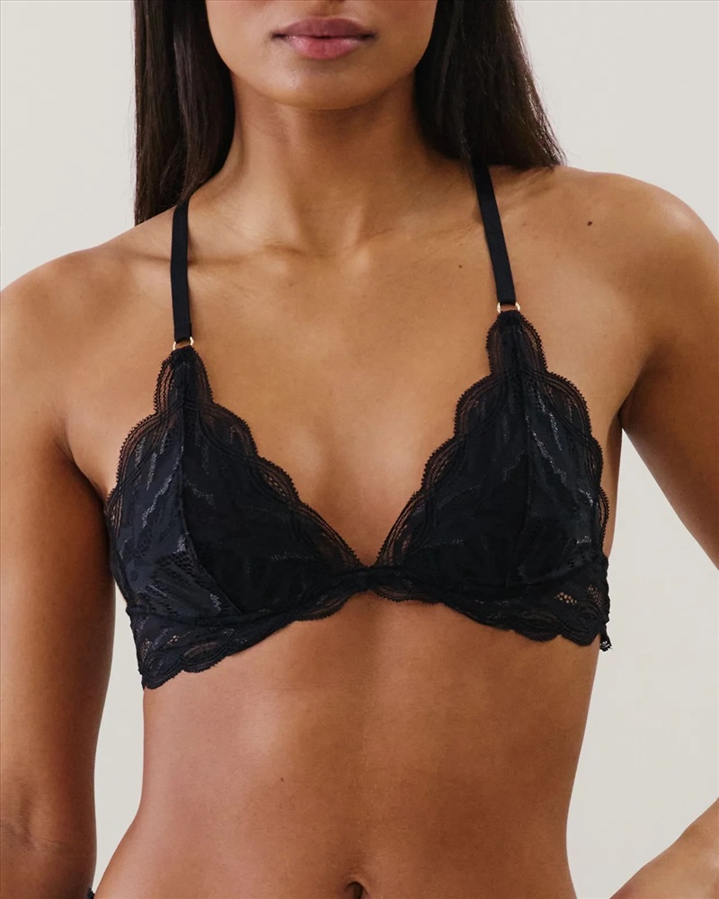 Sujetador triángulo push-up de encaje negro