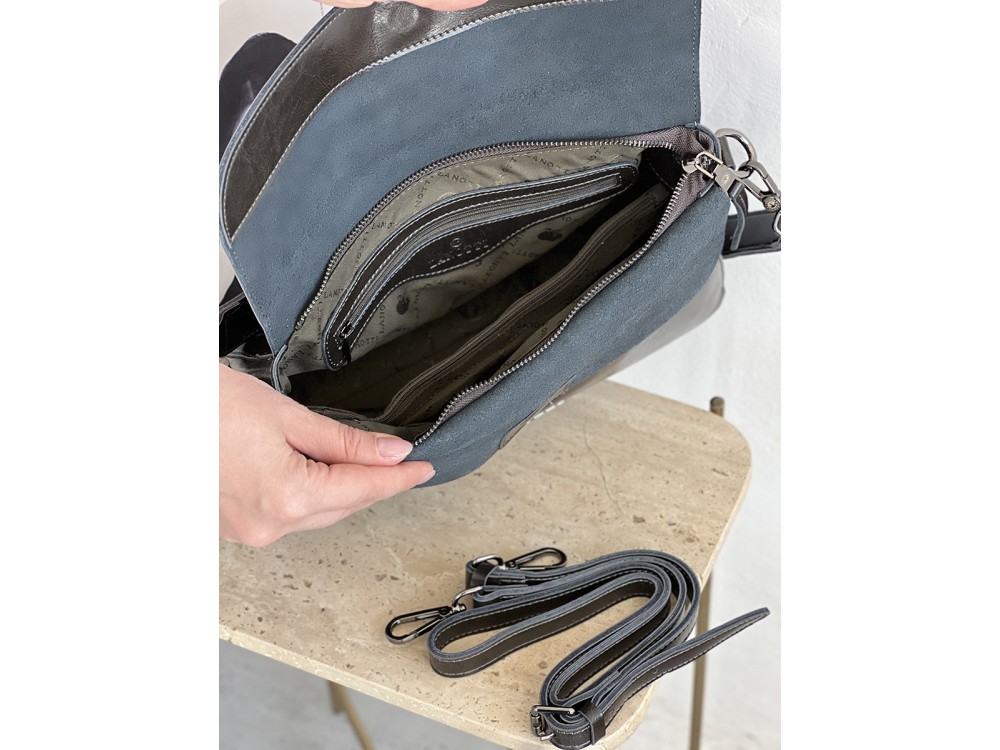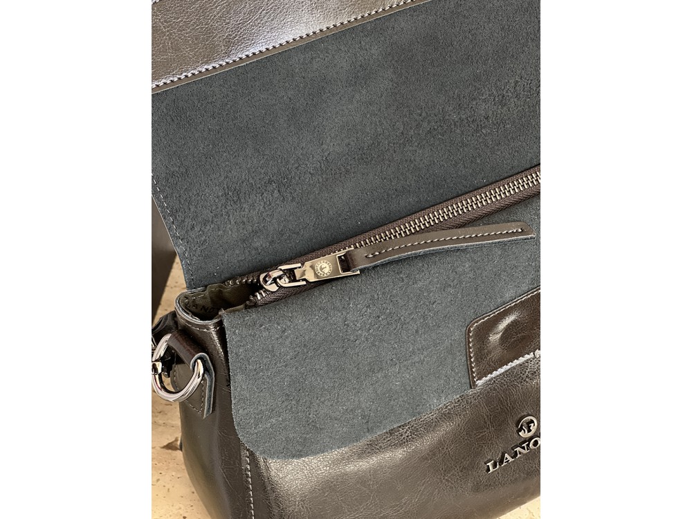 Внутри: 2 больших отделения с перегородкой в виде кармана на молнии, 2 маленьких отделения, одно из которых на молнии. Снаружи: 2 маленьких кармана на молнии.