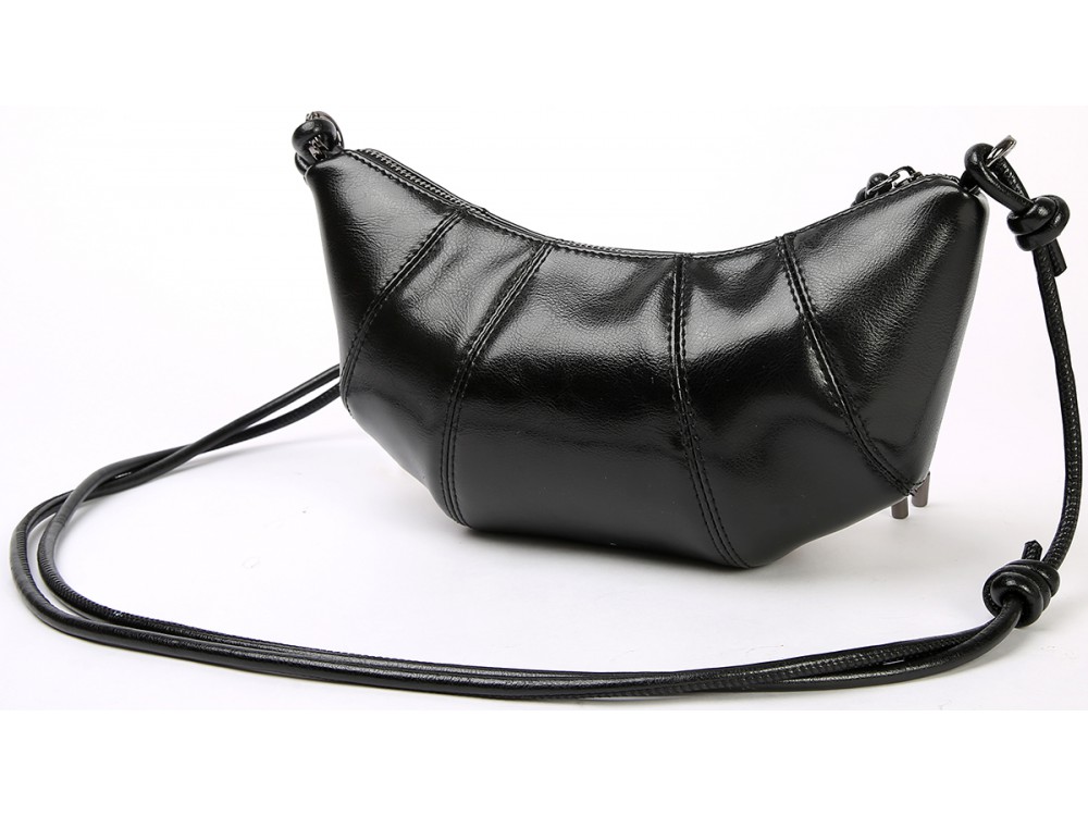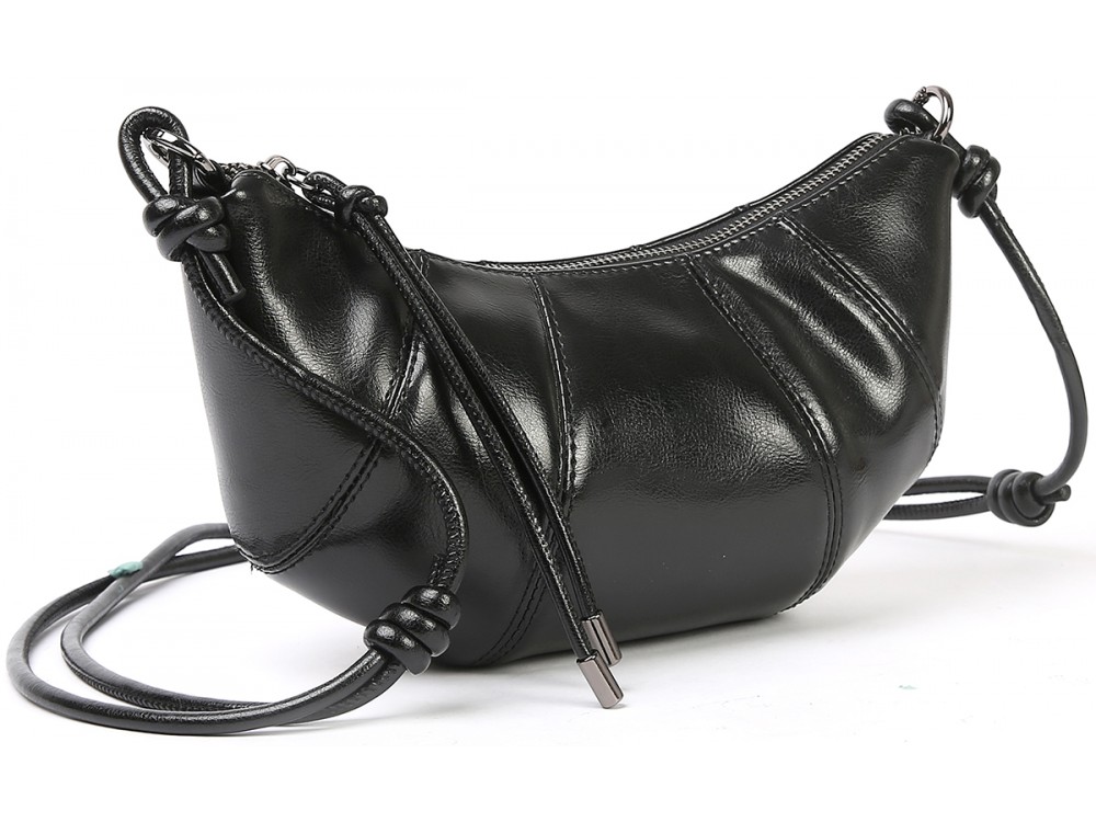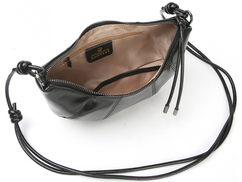 Сумка из натуральной кожи с длинным ремешком на плечо. Одно основное отделение застегивается на молнию. Внутри: два кармана для аксессуаров.