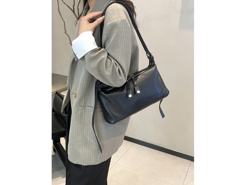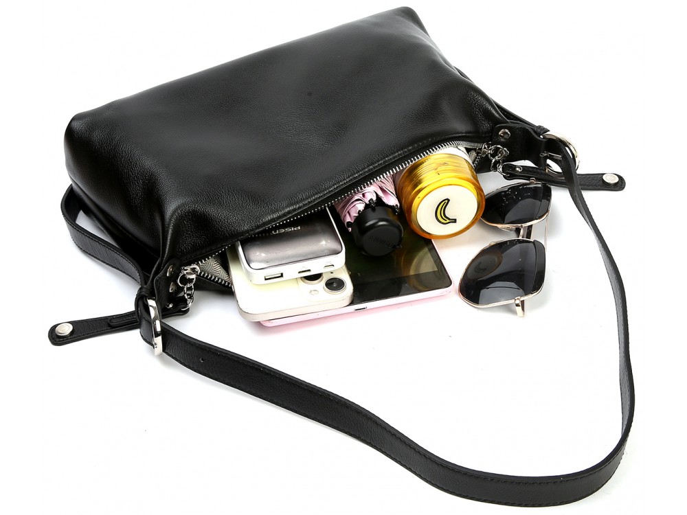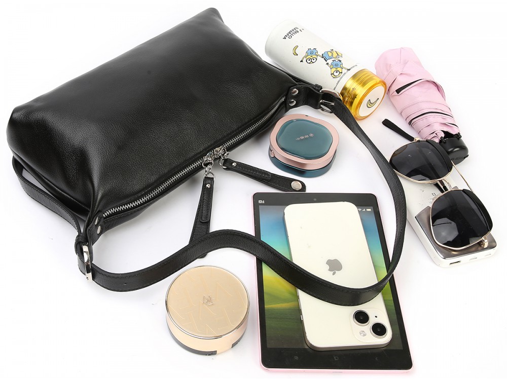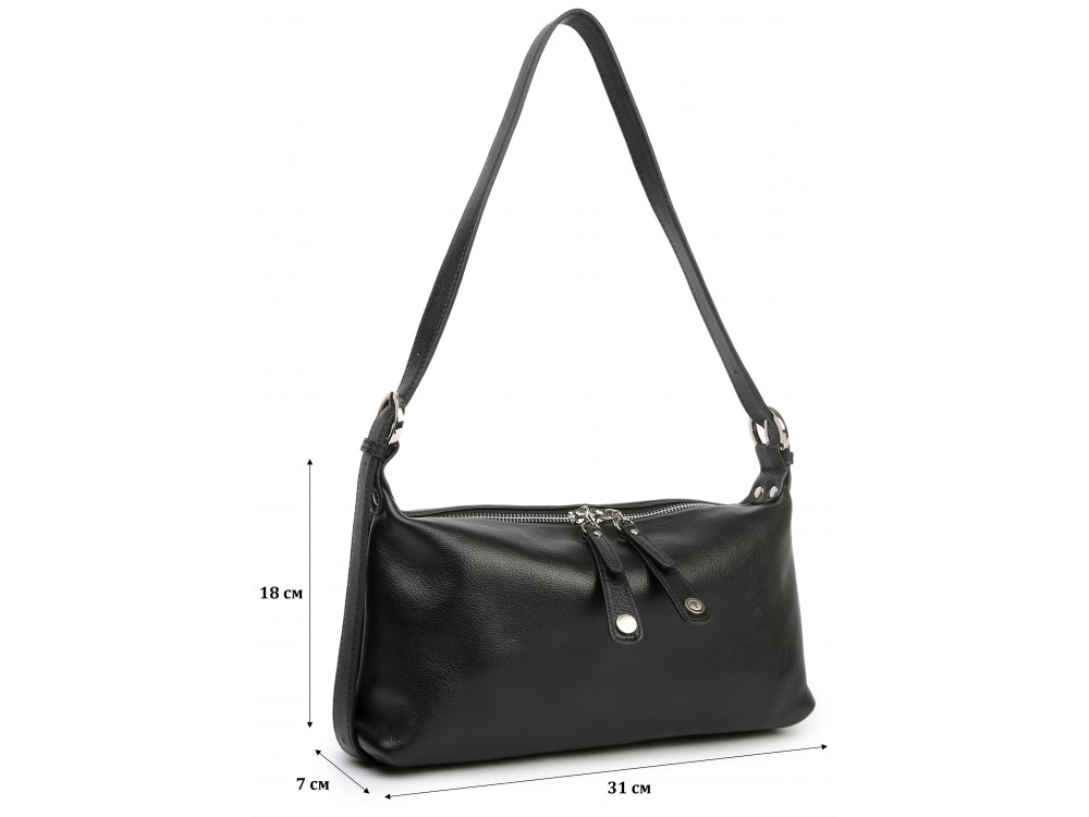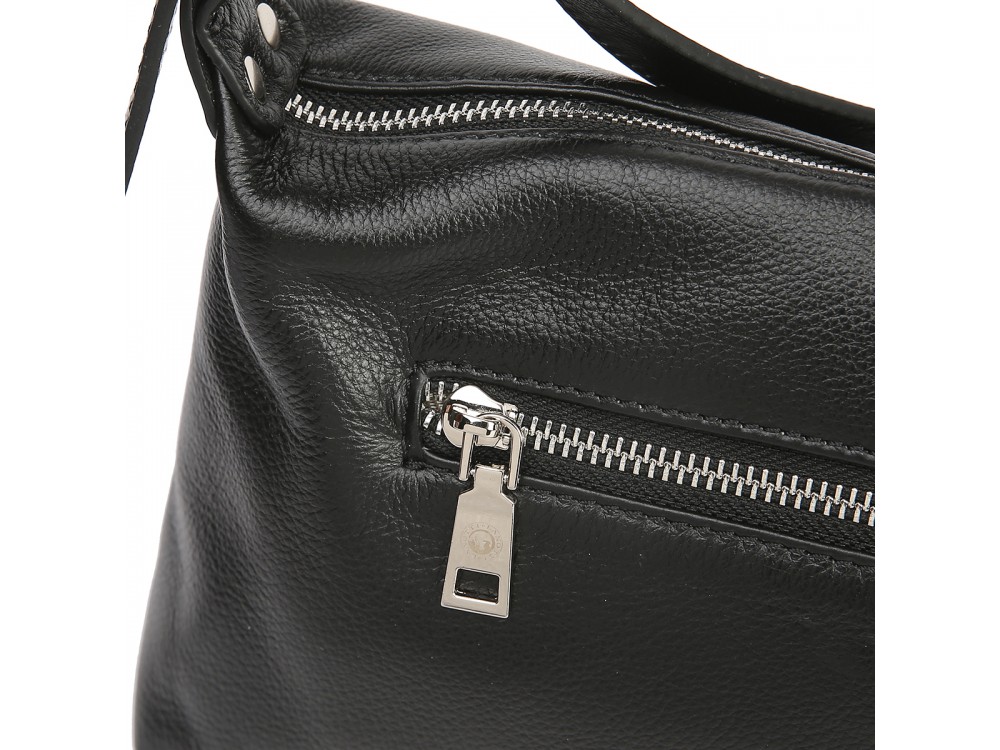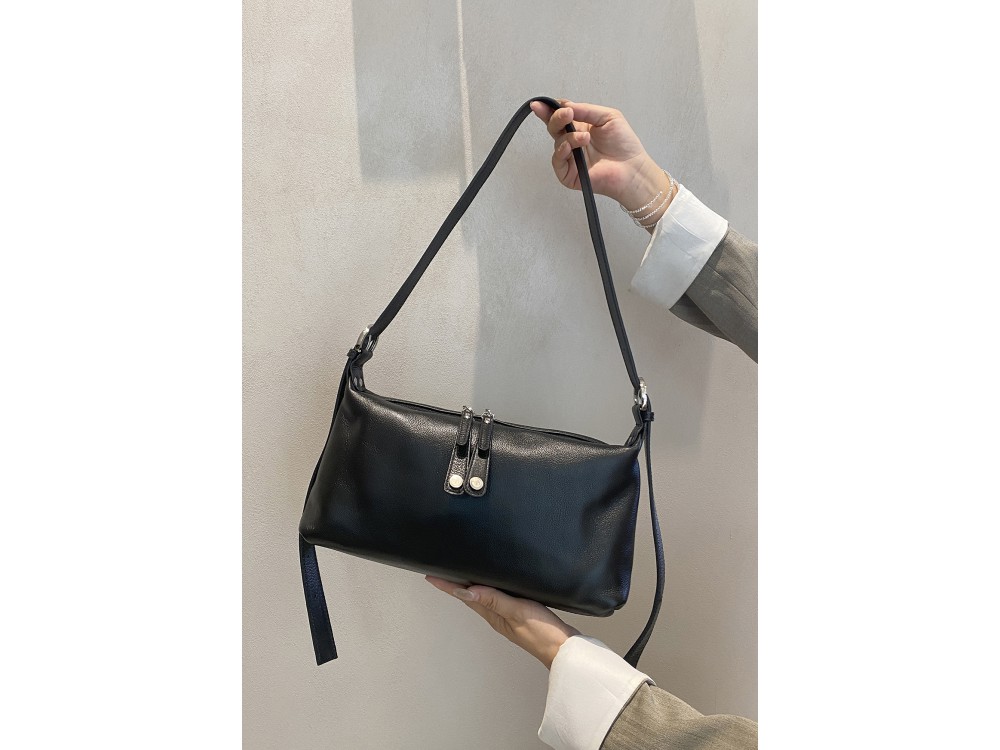 Сумка с ремнем на плечо и возможностью регулировки. Внутри: два отделения, между ними перегородка в виде кармана на молнии. Дополнительно два кармана для аксессуаров, один из которых застегивается на молнию. Снаружи: сзади карман для мелочей на молнии.