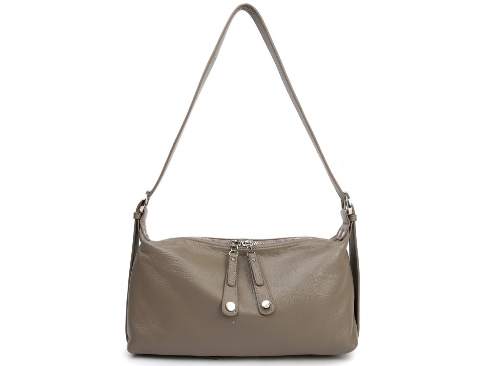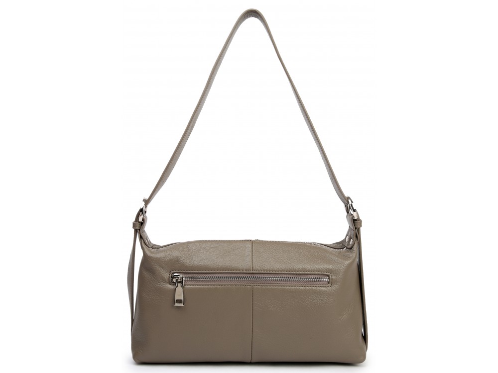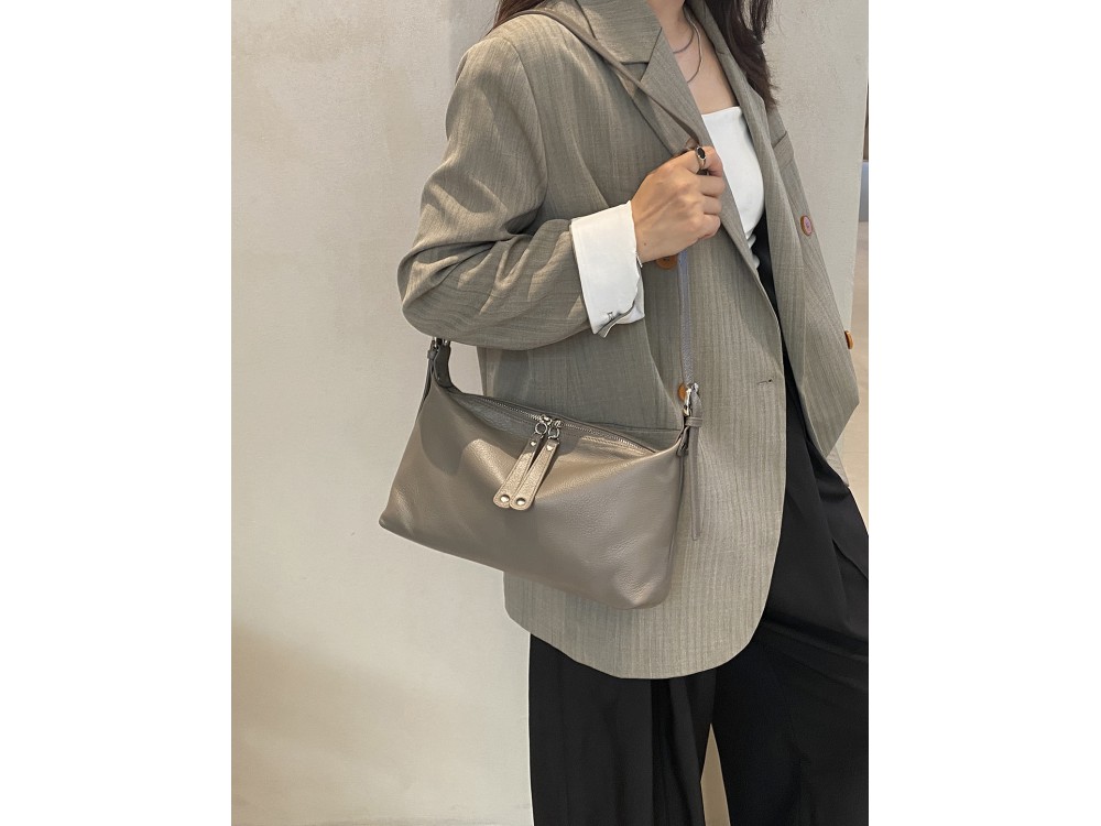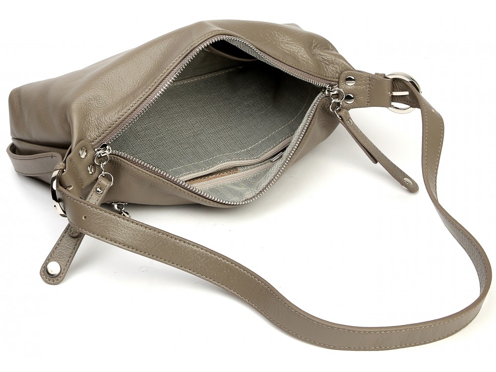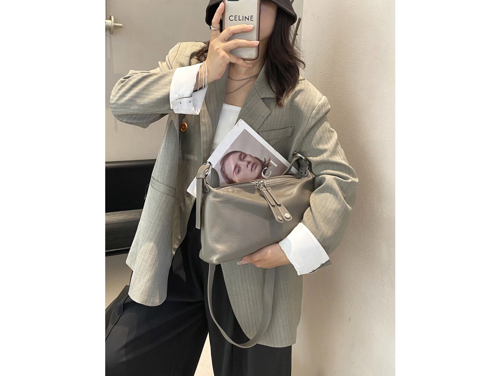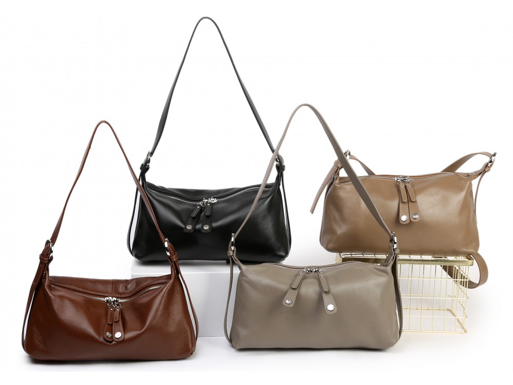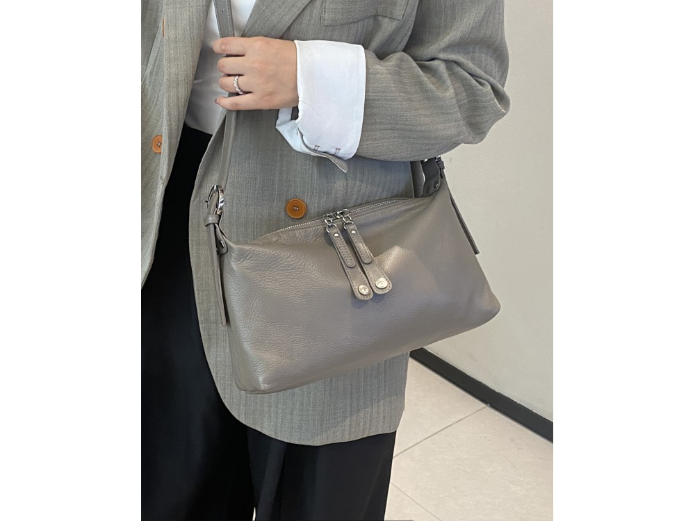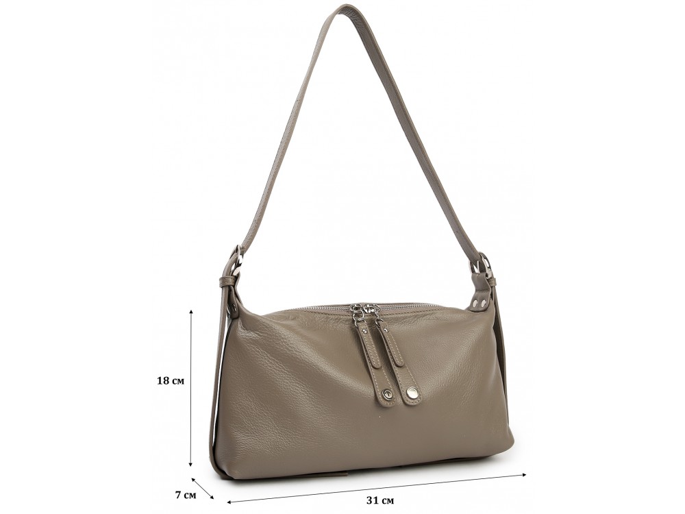 Сумка с ремнем на плечо и возможностью регулировки. Внутри: два отделения, между ними перегородка в виде кармана на молнии. Дополнительно два кармана для аксессуаров, один из которых застегивается на молнию. Снаружи: сзади карман для мелочей на молнии.