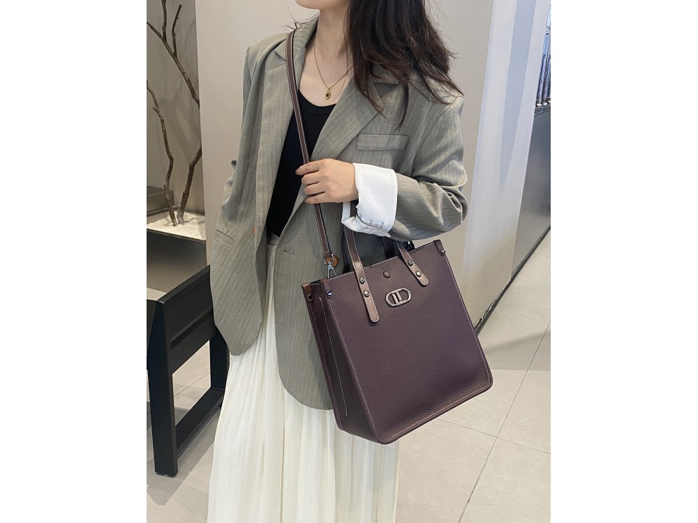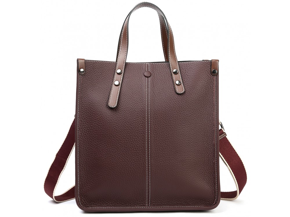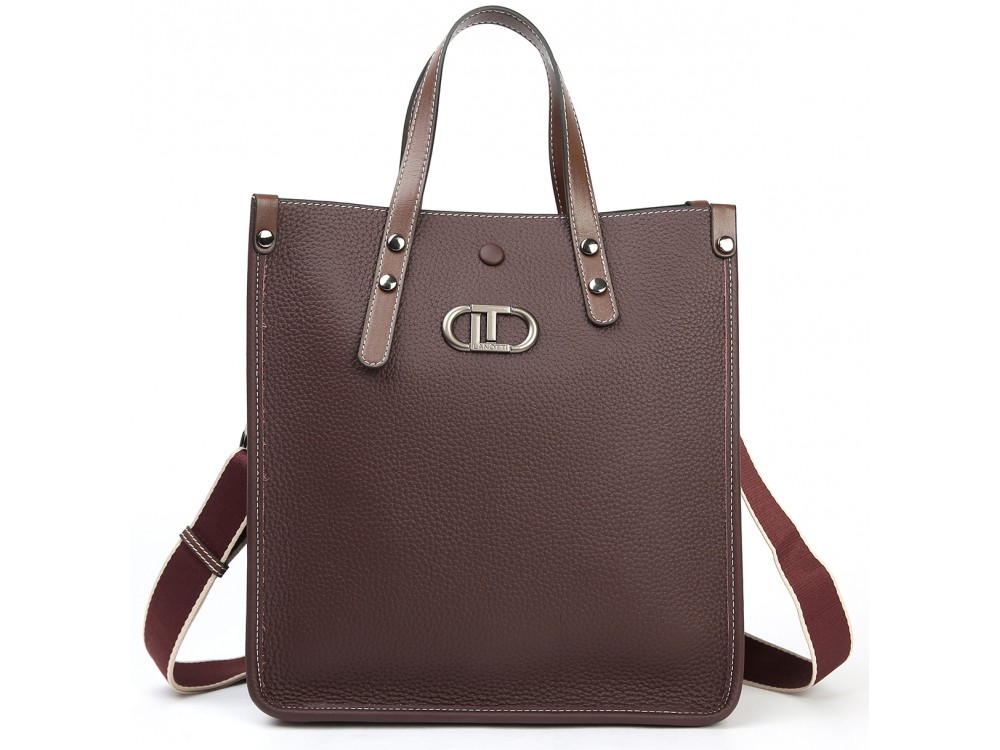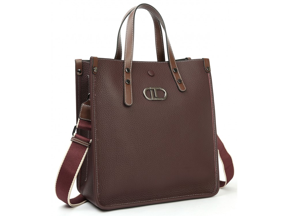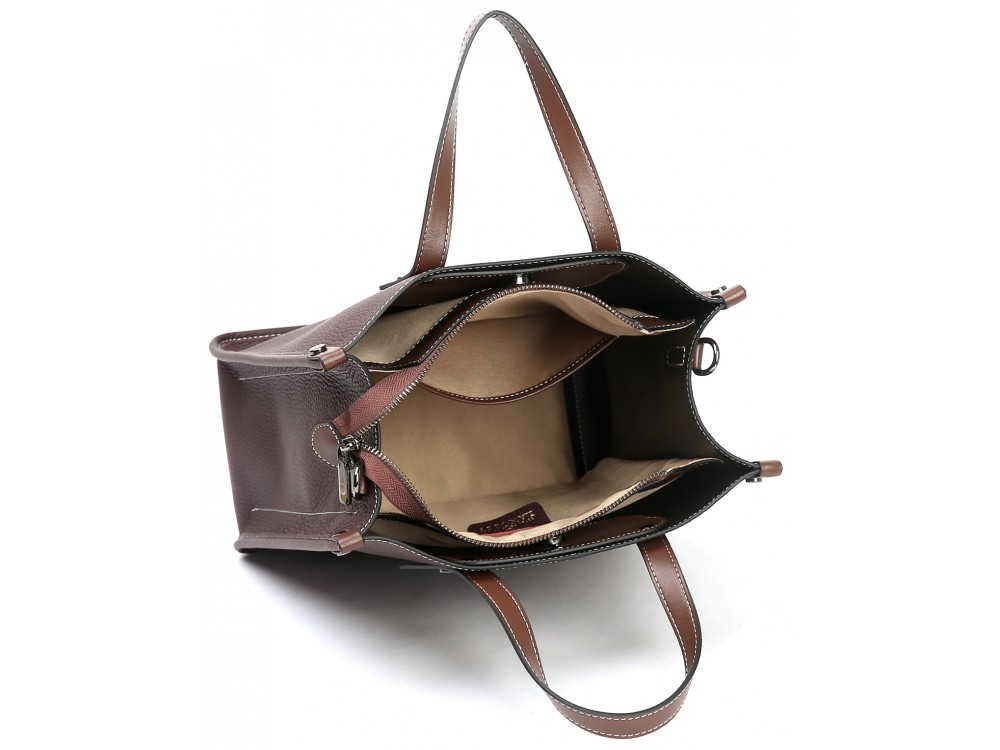 Две короткие ручки. Текстильный ремень на плечо + длинный кожаный ремень с возможностью регулировки. Три основаных отделения. Одно застегивается на молнию + внутри карман для телефона, дополнительный карман для аксессуаров на молнии. Два других отделения застегиваются на магнитную клепку.