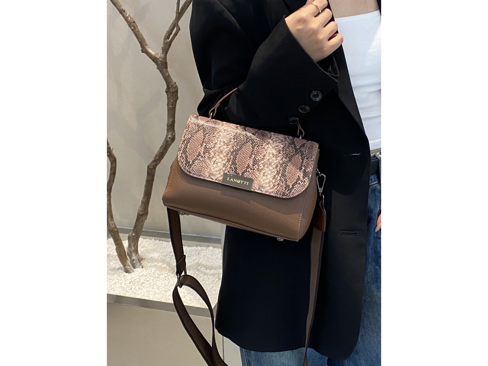 Сумка женская кожаная черная – это элегантно, стильно и удобно. Она позволит держать все важные и нужные вещи под рукой и в безопасности. Вашему вниманию представлена сумка в модном дизайне и по привлекательной цене. Сумка кросс-боди с контрастной коричневой ручкой является трендом осени 2023 года. Именно поэтому она обязана быть в гардеробе каждой модницы. Стильный деловой аксессуар придаст вашему повседневному или торжественному образу особый шарм и изысканность. Сумочка легкая, компактная, но при этом вместительная. Все самое необходимое поместится и в этой модели. Представленная кросс-боди имеет одно просторное отделение и два кармана внутри – открытый и на молнии. Такая женская сумочка из натуральной кожи пригодится на прогулке, в путешествии, для выхода в кино или ресторан. Она так же гармонично смотрится с вечерним платьем, строгим костюмом или молодежным луком. Дизайнерские стильные модели абсолютно все выглядят солидно и респектабельно. Деловой портфель пошит аккуратно и просто, не имеет изъянов. Cross-body изготовлена из мягкой, но прочной натуральной кожи. Благодаря этому она прослужит вам не один сезон и всегда будет выглядеть как новая. Модель не боится дождя, снега, палящего солнца. Берите ее с собой в любую погоду! Классическая, базовая, элегантная кросс-боди бренда Lanotti представлена в черном, зеленом и цвете слоновая кость. Стильные тоут выполнена из натуральной кожи, которая хорошо держит форму. Прекрасно подходит для повседневной носки, в офис, школу, на свадьбу или свидание. Бренд Lannotti следит за новинками главных модных домов Европы и Азии , чтобы наши покупатели имели возможность приобрести экземпляры не уступающие по стилю и качеству Hermes Furla Fendi Dr. Koffer Christian Dior Louis Vuitton Guess Zanellato Michael Kors Cromia Gucci Prada Bottega Veneta Marc Jacobs Chanel.Если Вы цените качество других российских производителей то бренд Lanotti Вас порадует.