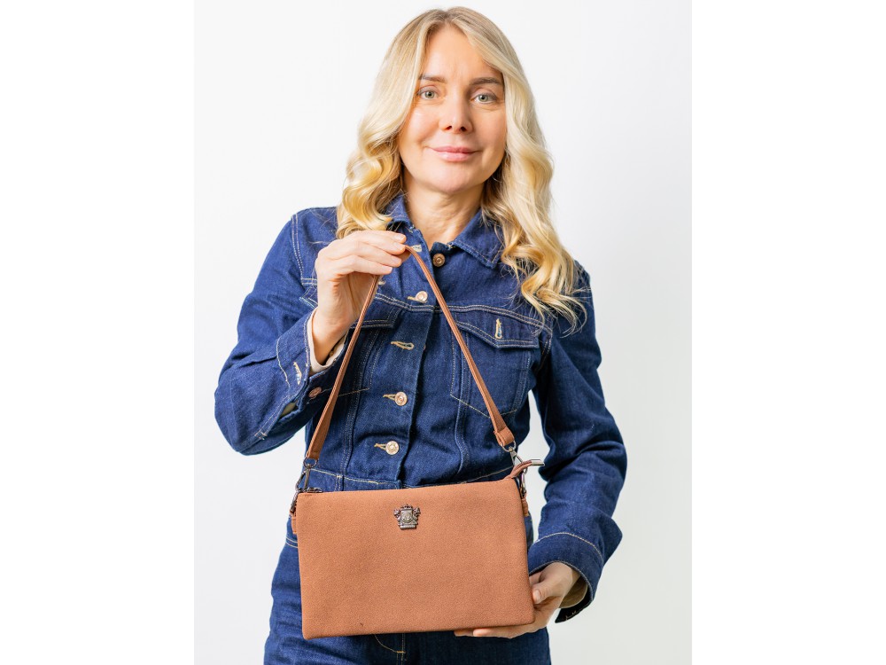 Размер: 26*16,5*7 Состав: ЭКОЗАМША Вид застежки: молния Описание: три автономных отделения, которые видны на боковом и нижнем ракурсе. Благодаря продуманной конструкции, сумка остаётся стройной даже при полной загрузке. Подходит для ежедневных дел, поездок и прогулок. Комментарии к товару