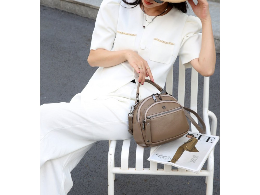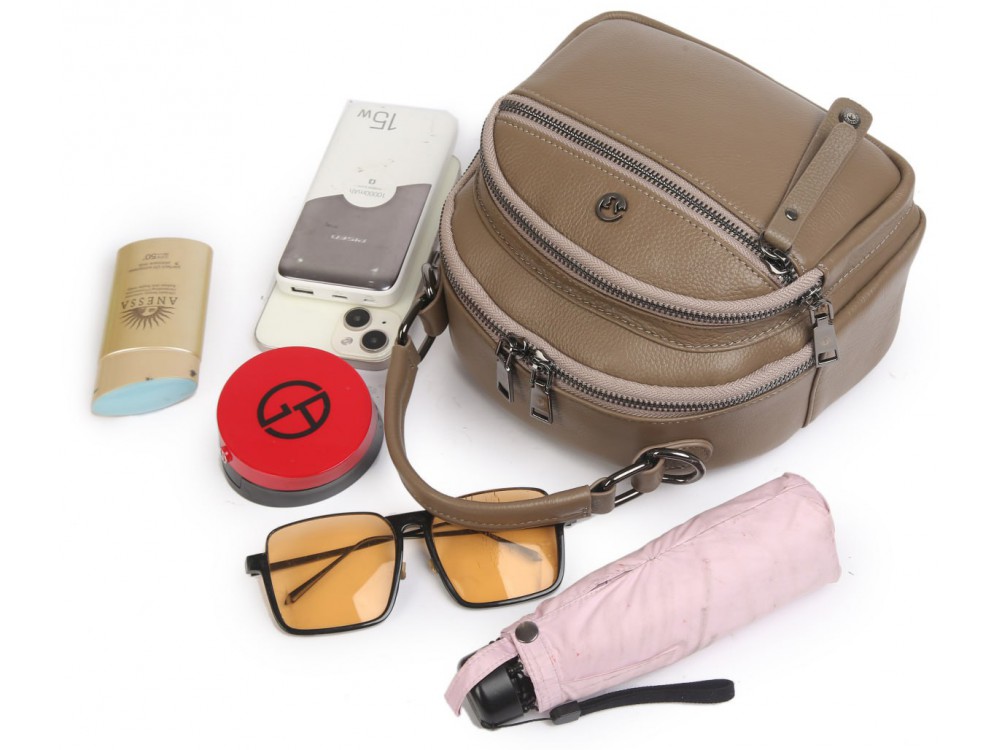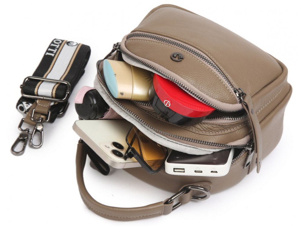 Размер: 22/11/20 Вес товара без упаковки: 0,4 Состав: натуральная кожа Вид застежки: молния Описание: Короткая ручка и два ремня, текстильный ремень и кожаный с возможностью регулировки. Одно основное отделения на молнии. Внутри: два кармана один из которых на молнии. Снаружи: спереди накладной вместительный отдел на молнии, дополнительный карман для акссесуаров на молнии. Сзади: карман для мелочей на молнии. Сумка максимально удобна, компактна, эргономичная. Комментарии к товару