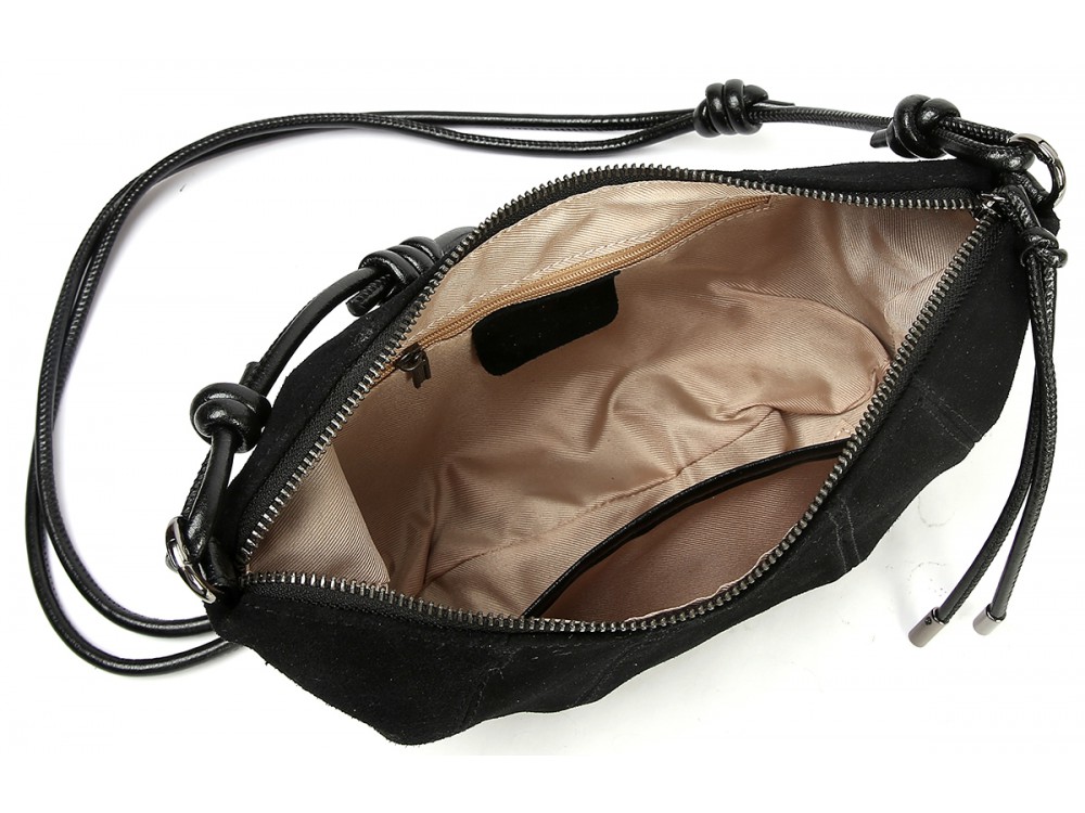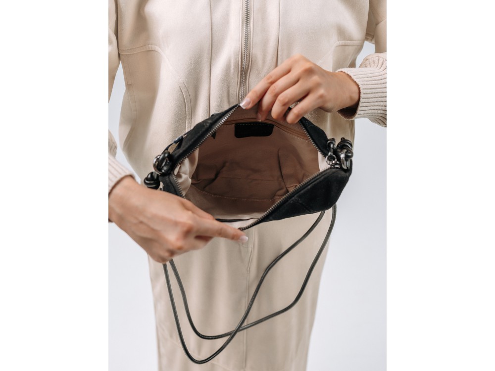 Данная модель имеет регулируемый ремень из натуральной кожи. Внутри одно основное отделение с карманом для мелочей на молнии.