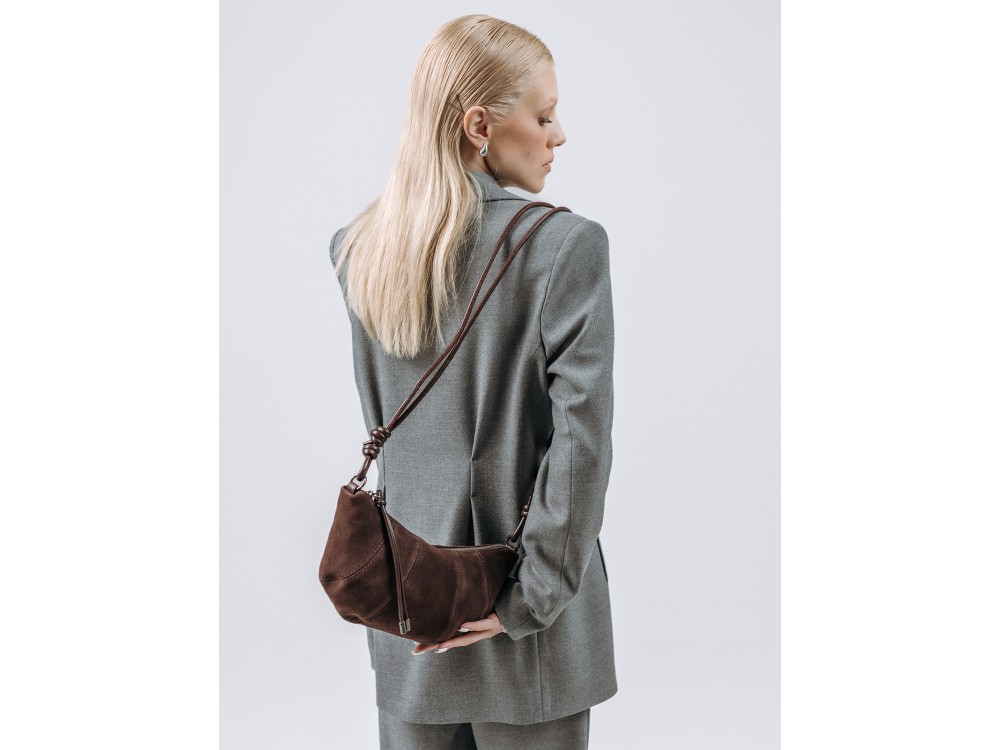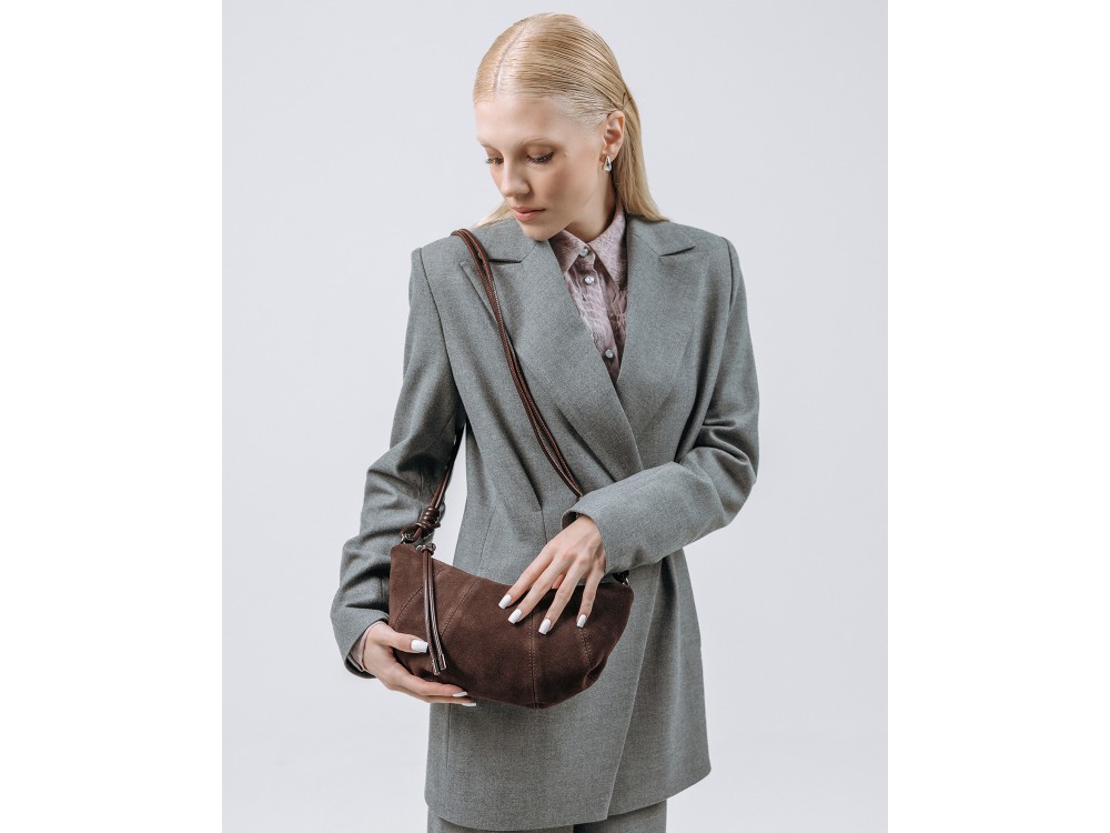 Размер: 28*8,5*16 Вес товара без упаковки: 0,5 Состав: Натуральная кожа/замша Вид застежки: молния Описание: Данная модель имеет регулируемый ремень из натуральной кожи. Внутри одно основное отделение с карманом для мелочей на молнии. Комментарии к товару