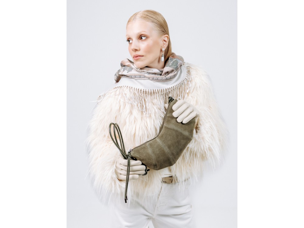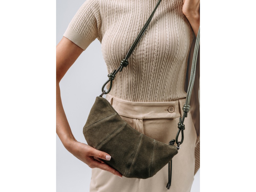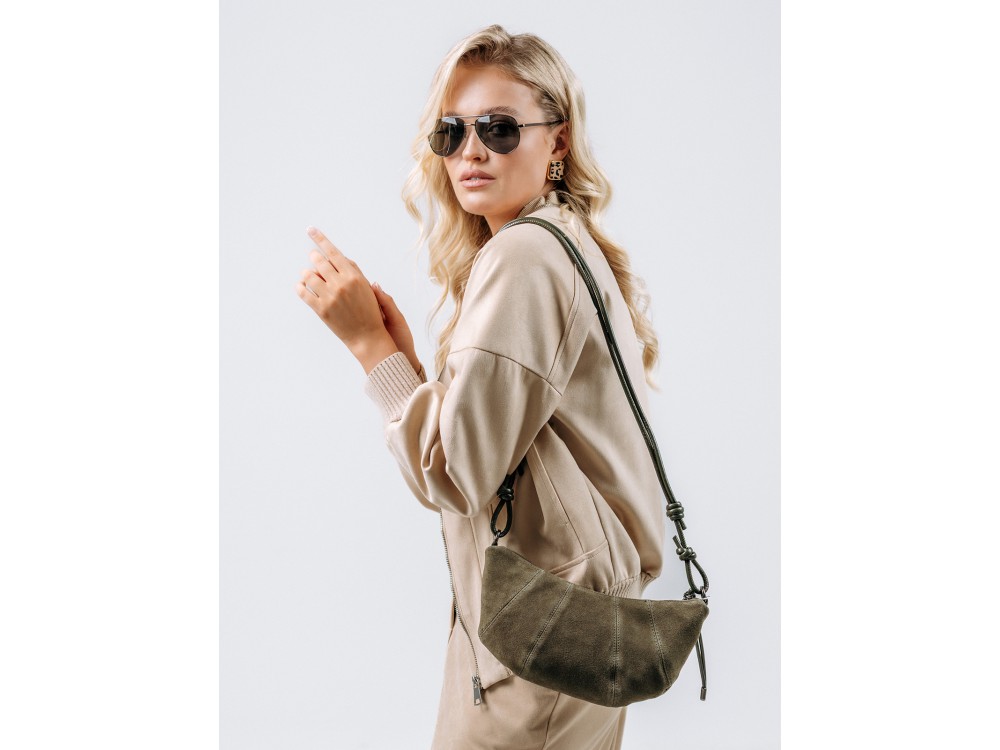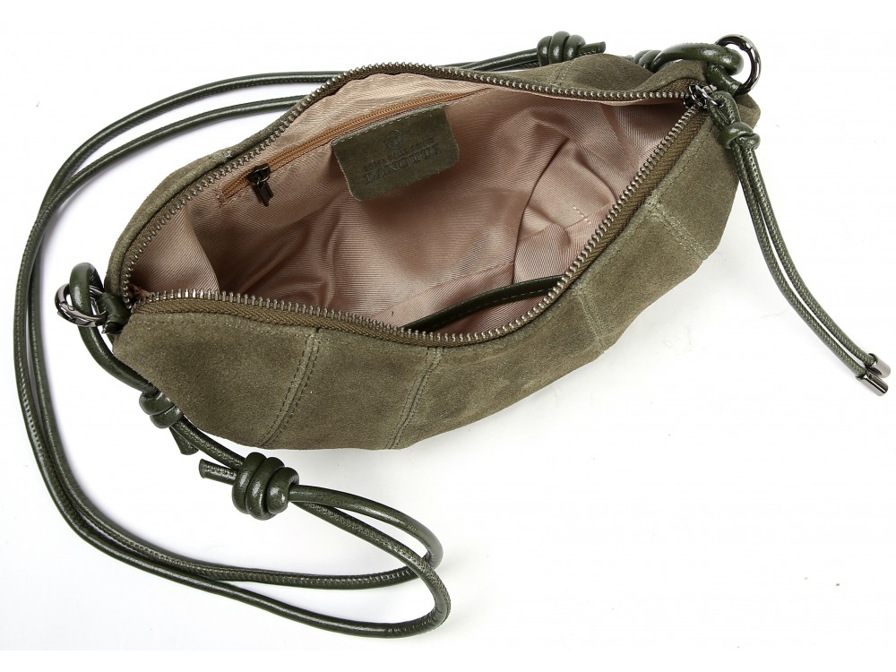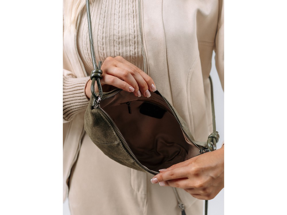 Данная модель имеет регулируемый ремень из натуральной кожи. Внутри одно основное отделение с карманом для мелочей на молнии.