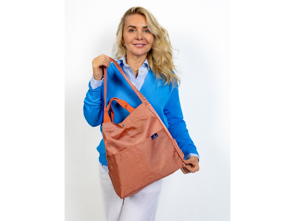 Сумка-шоппер выполнена из нового, премиального материала, который сочетает в себе прочность ткани плотностью 600 DEN и надежное водоотталкивающее покрытие.