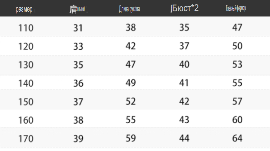 Размер: 110, 120, 130, 140, 150, 160, 170