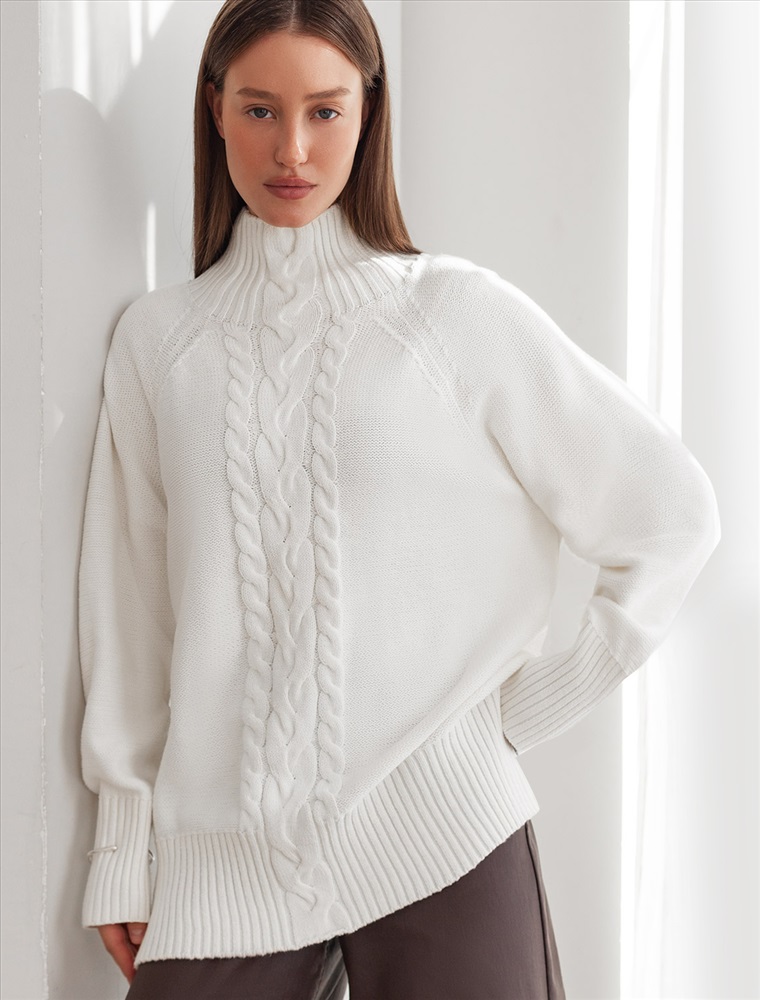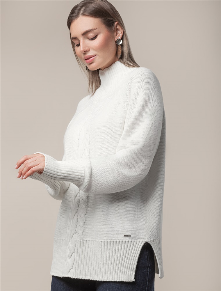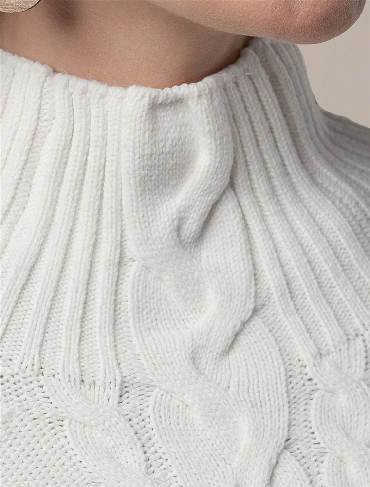 Параметры модели на первом фото: Рост 170, бюст 89, талия 63, бедра 92 Свитер выполнен из мягкой хлопковой пряжи фактурной вязки с добавлением акрила. Модель связана изнаночной петлей, в сочетании с которой узор косы и высокие рибаны поддерживают ирландский стиль, который всегда в тренде. Комфортный ворот стойка хорошо защищает от ветра. Боковые разрезы поддерживают расслабленный свободный силуэт. Изделие сочетается с любым низом и не требует дополнительных аксессуаров. Комментарии к товару