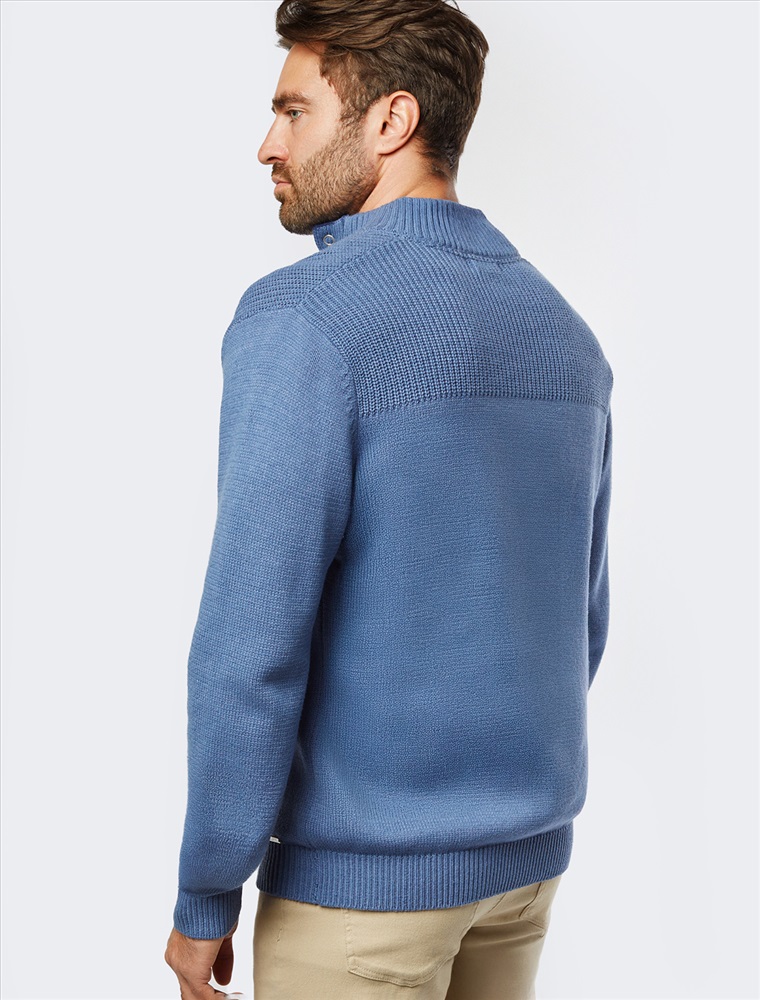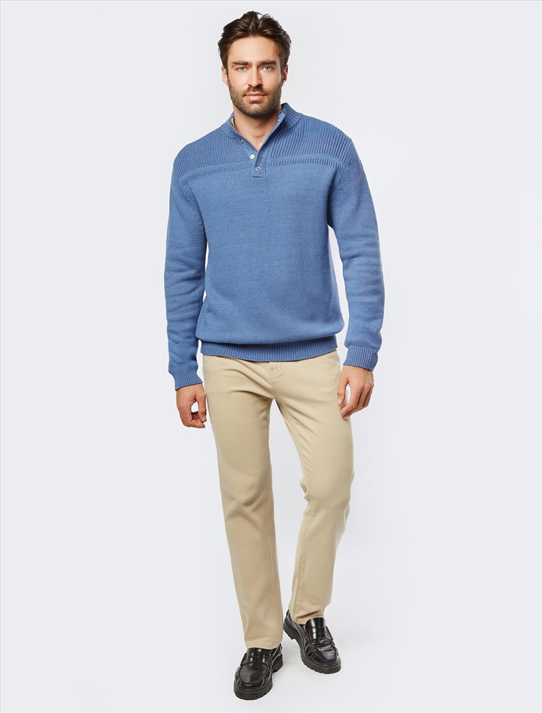 Состав: 60%Хлопок 40%ПАН (акрил) Свитер фактурной вязки с застежкой на крупные кнопки выполнен из мягкой хлопковой пряжи с добавлением акрила. Модель из такого материала не препятствует циркуляции воздуха, но при этом хорошо сохраняет тепло и не колется, поэтому ее комфортно носить на голое тело. С помощью кнопок можно регулировать высоту воротника и носить свитер по-разному. Внизу изделия нашивка бренда из эко-кожи.