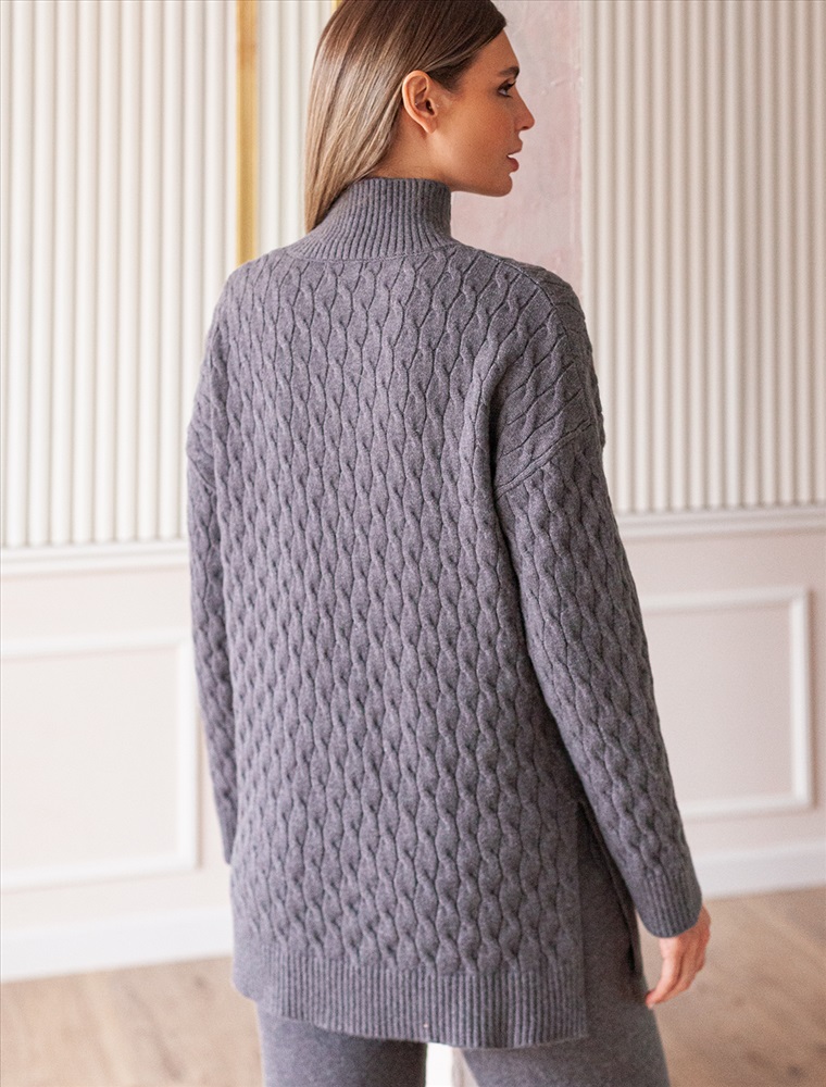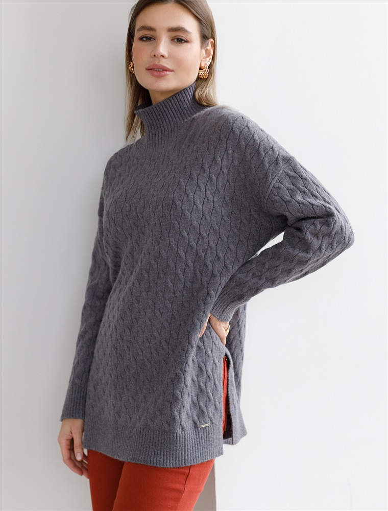 Параметры модели на первом фото: Рост 170, бюст 89, талия 63, бедра 92 Свитер фактурной вязки косы выполнен из мягкой пряжи с кашемиром. Удлиненная свободная модель впишется в любой гардероб и поможет создать стильные расслабленные образы для любой фигуры. Нежная пряжа приятно ощущается на теле. Отдельным украшением служит металлический логотип бренда. Комментарии к товару