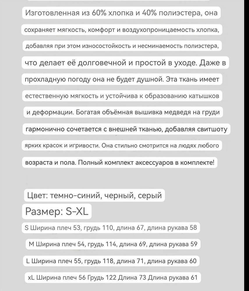 Материал: хлопок 60%, полиэстер 40% Комментарии к товару