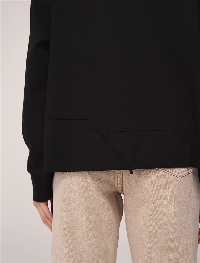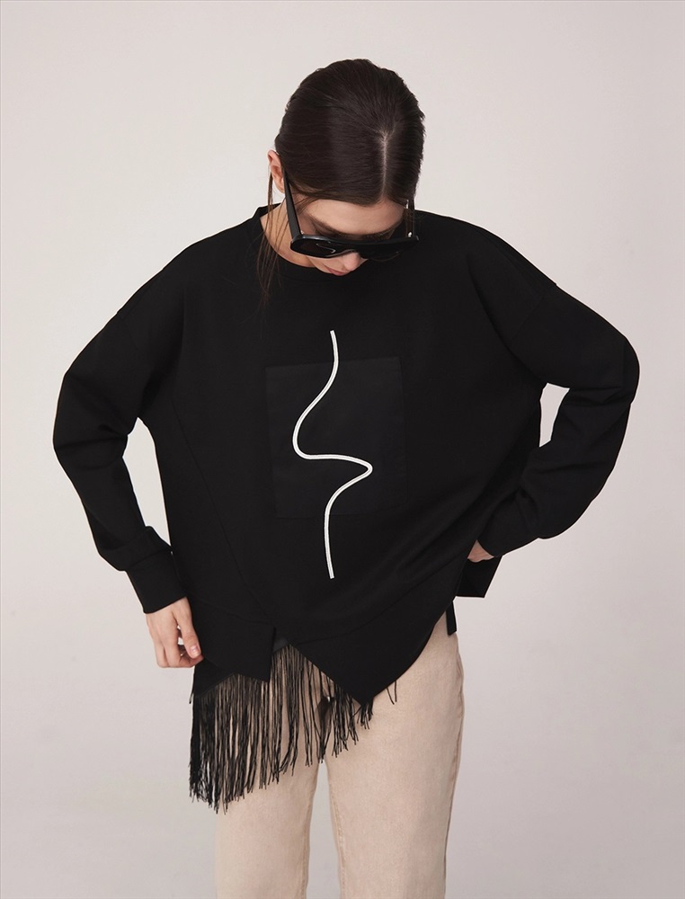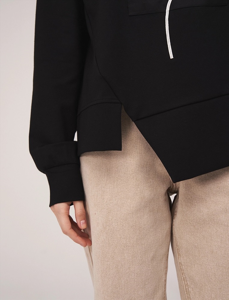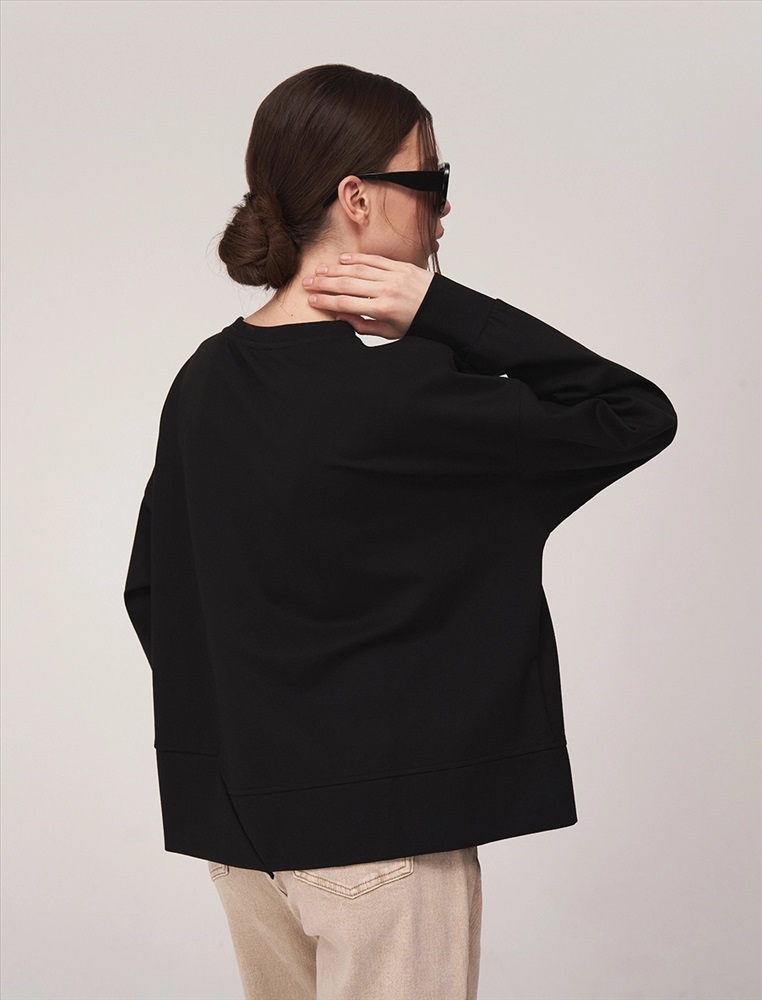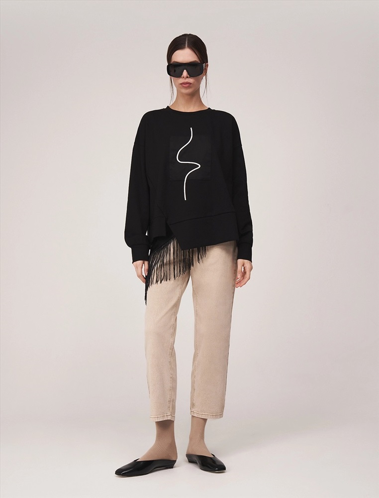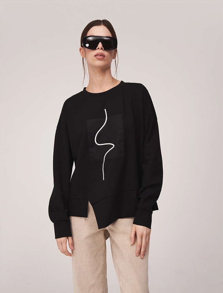 Свитшот регулярного силуэта с круглой горловиной и спущенной линией плеча. По передней части изделия — контрастная вышивка. По низу разрез. На манжетах и по низу — эластичная рибана. Ткань основы выполнена из хлопка с добавлением спандекса.