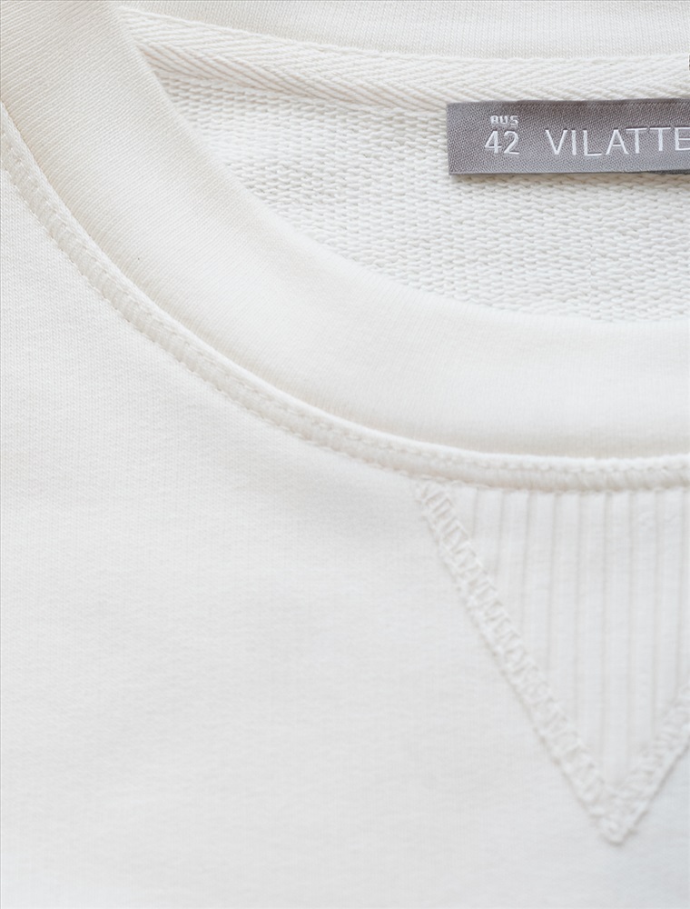 Размер товара на первом фото: 42 Свитшот среднего объема молочного цвета выполненный из футера двухнитки без начеса - идеально подойдет для создания стильного и комфортного образа. Эластан в составе поддерживает формоустойчивость, а премиальный хлопок обеспечивает дышащие свойства и мягкость материала. Принт нанесен краской. Перевод принта Athleisure mood - спортивное настроение. Свободный крой делает его подходящим на любую фигуру, включая большие размеры, девушки плюс сайз будут чуввствовать себя в нем смело и уверенно. Легкий дизайн и аккуратные разрезы по бокам подчеркивают актуальные тренды минимализма и женственность обладательницы этого нежного свитшота. Изделие дополнено металлическим логотипом бренда. Базовый джемпер комфортен для дома, спортивных или повседневных образов в комплекте с брюками нашего бренда, а также станет отличным выбором для работы в офисе в сочетании с классическими брюками. Комментарии к товару