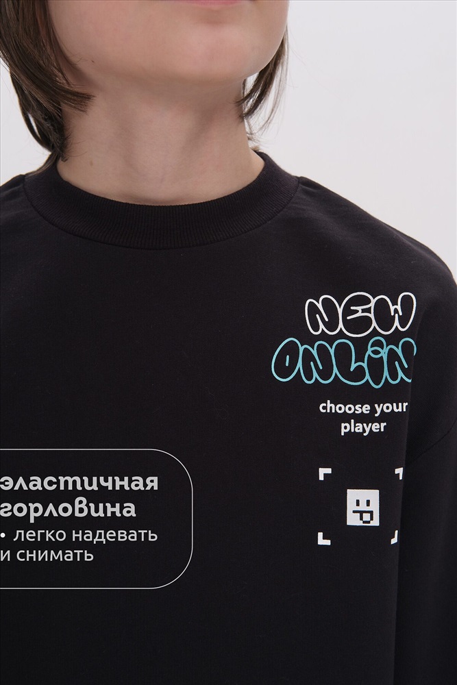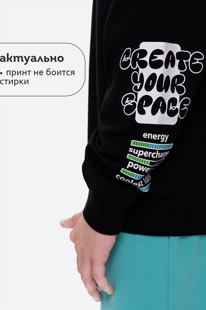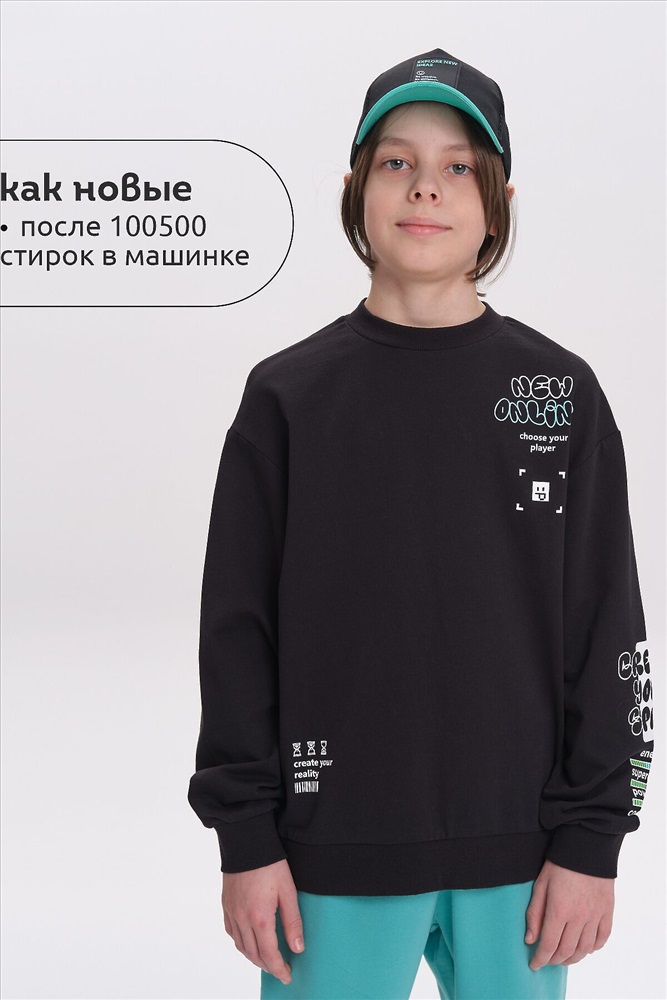 Страна производства: Китай Свитшот без начеса из материала футер-петля. Манжеты и низ изделия из рибаны. По переду принт в виде смайлика, а также текстовый принт. Перевод надписи: "new online" - новый онлайн, "choose your player" - выбери своего игрока, "create your reality" - создай свою реальность. Рукав также украшен принтом с надписью. Перевод надписи "create your space" - создавай свое пространство, "energy, power-ups, coolest-100%" - энергия, бонусы, крутость - 100%. В составе ткани преобладает высококачественый хлопок — спортивная кофта приятна на ощупь и прекрасно пропускает воздух. Тонкую весеннюю кофту можно носить круглый год. Подходит для любителей корейской и японской моды, стиля аниме. Широкая размерная сетка подойдет как для малыша так и для подростка.