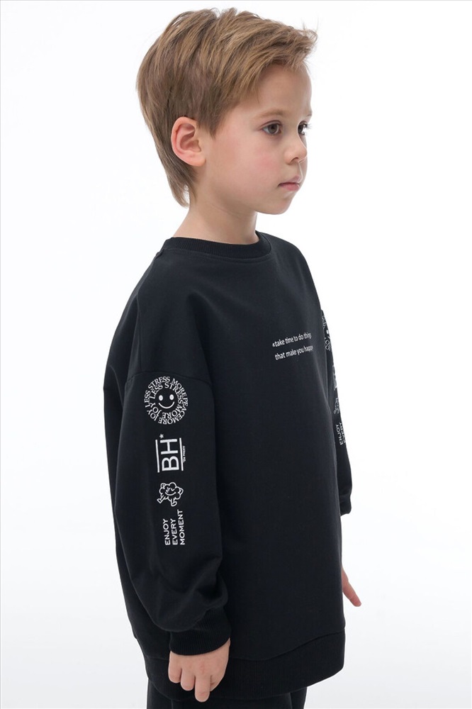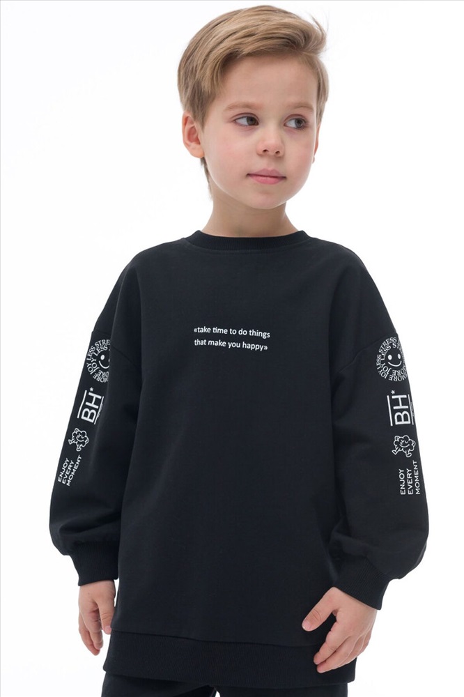 Свитшот для мальчика. Молодежная футболка с длинным рукавом, свободного прямого кроя и актуальный оверсайз силуэт делают изделие невероятно модным и удобным. Свитшот из футера с принтом на рукавах. Низ рукава и изделия на манжете из риба, по горловине обтачка из риба. Толстовка детская без капюшона согреет в прохладную погоду, охладит в жаркую пропуская воздух, подстраиваясь под нужный температурный режим. Можно надевать под ветровку как весенний джемпер, под тонкую жилетку как летний джемпер или в качестве самостоятельного элемента верхнего гардероба мальчиков. Объемная кофта подростковая самая уютная вещь на весну и на лето. Свитшот для малыша - базовая вещь в гардеробе стильного подростка. Благодаря уникальному крою, удлиненный джемпер на мальчика комфортно подойдет для любой фигуры юноши, для высоких и невысоких детей. Мягкий трикотажный лонгслив для мальчика с длинным рукавом подойдет на улицу для прогулок, отдыха на природе, путешествий, посещение кружков и секций, на танцы, хип-хопа, занятия спортом, как домашняя одежда для дома и повседневный вариант. Стильный лонгслив яркий с принтом и рисунком для парня станет самым любимым и востребованным в гардеробе ребенка.
