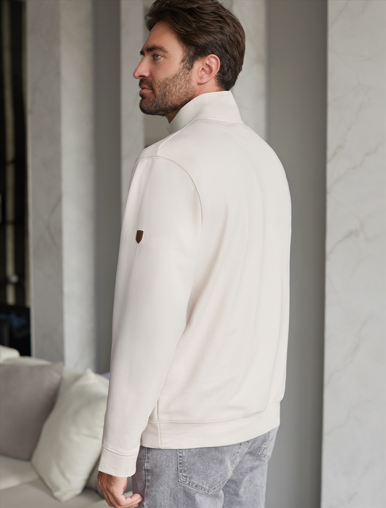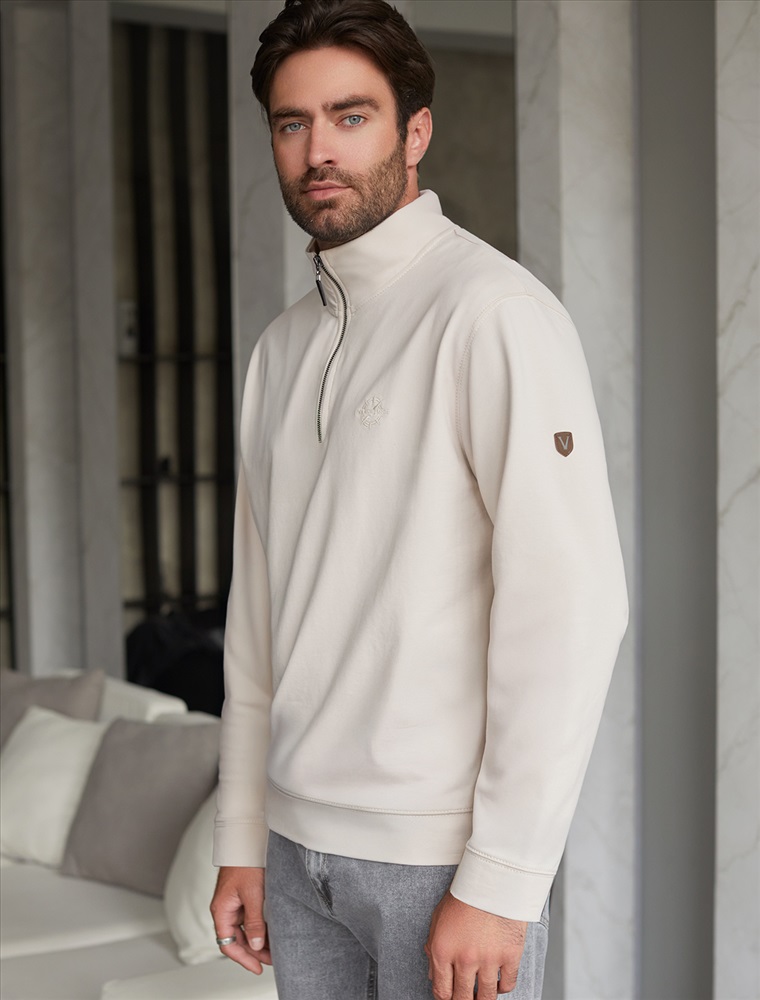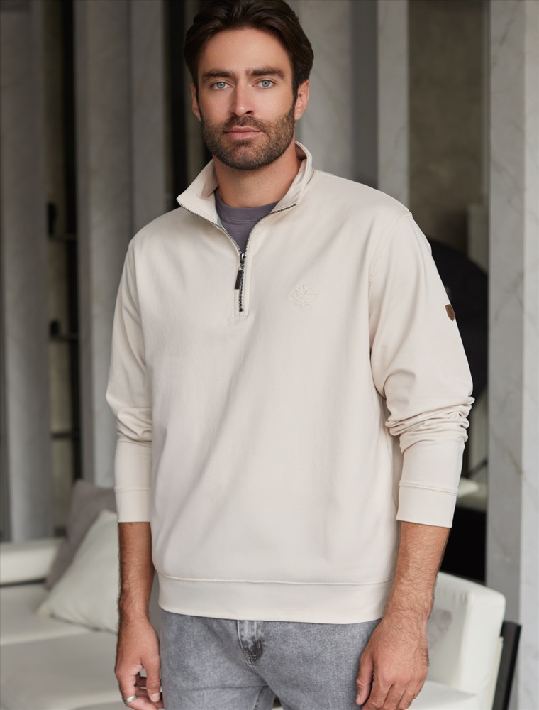 Размер товара на первом фото: 54 Уютный и стильный свитшот светло-бежевого цвета с воротом-стойкой на молнии - идеальный выбор для повседневного образа. Выполнен из премиального футера двухнитки с эластаном, Изнаночная сторона невероятно мягкая, что делает материал особенно приятным к телу. Благодаря эластичной структуре ткань хорошо тянется, сохраняет форму после длительной носки и обеспечивает свободу движений даже в самых активных буднях, а натуральный состав обеспечивает отличную воздухопррницаемость, позволяя коже дышать и не перегреваться. Свободный крой летнего свитшота подходит для мужчин и парней разных комплекций, комфортно сидит в больших размерах, Широкая размерная линейка позволяет подобрать повседневный свитшот для любого типа фигуры, обеспечивая комфортную посадку без ограничений движений. Манжеты на рукавах и резинка по низу обеспечивают дополнительное удобство при носке, защищая от ветра, сохраняя тепло и добавляя аккуратности образу. Минималистичная вышивка в виде надписи в тон спортивной кофты добавляет стильный акцент, подчеркивая индивидуальность . Перевод надписи Wanderlust - страсть к путешествиям. На рукаве металлическая нашивка с логотипом бренда. Этот джемпер станет универсальным решением для прогулок, так и для работы в офисе или дома. Продуманный крой позволяет легко сочетать изделие с джинсами или брюками, создавая стильные и практичные комплекты. Комментарии к товару