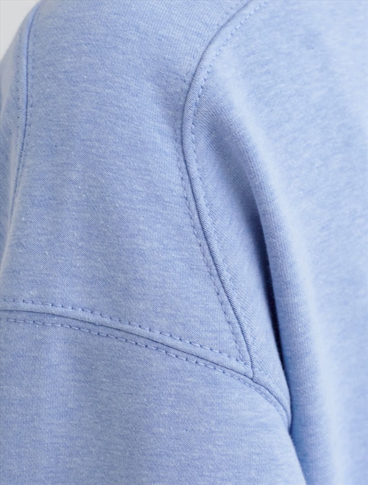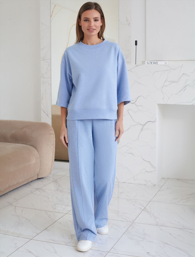 Плотность: 320 Г/м2 Свободный свитшот голубого цвета с эффектом меланж выполнен из мягкого петельчатого футера двухнитки с добавлением эластана, что обеспечивает комфортную посадку и комфорт. Материал отличается мягкостью и приятной текстурой, позволяя коже дышать и обеспечивая максимальное удобство при носке, а так же хорошей износостойкостью и сохраняет форму даже после многочисленных стирок. Круглый ворот и широкие рукава средней длины придают свитшоту стильный и современный вид и делают образ расслабленным и непринужденным, такой вариант отлично сядет на большие размеры, подчеркивая достоинства фигуры. .Джемпер идеально подходит для повседневной носки и отлично подойдет тем, кто ценит удобство и свободу движений без компромиссов по стилю. Этот свитшот станет отличным выбором в прохладную погоду в комплекте с бомбером D49,141 или уютным дополнением к домашнему образу в комплекте с брюками D44.157 Комментарии к товару