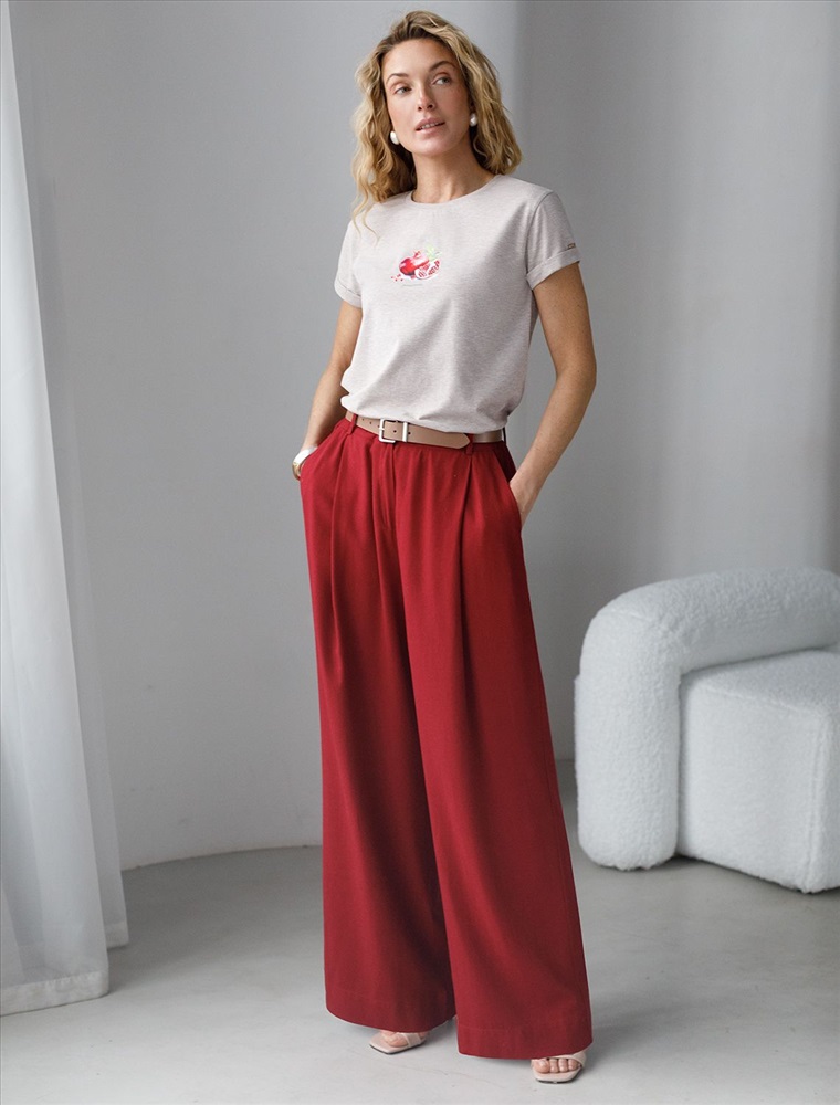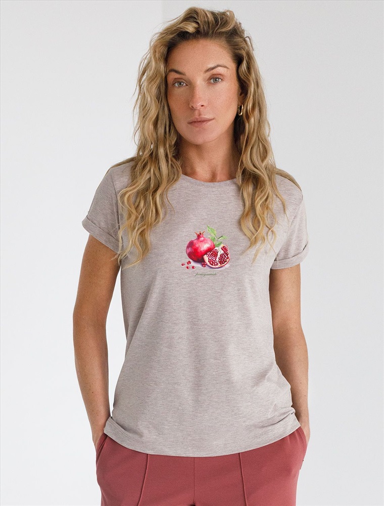 Плотность: 170 Г/м2 Модная футболка кофейного цвета привлекает внимание своим интересным дизайном и ярким принтом. Благодаря прямому крою изделие комфортно садится на любую фигуру, в том числе на большие размеры, и не сковывает движений. Круглый вырез подчеркивает современный стиль, а натуральный материал из хлопка с добавлением эластана обеспечивает удобство в повседневной носке и приятные тактильные ощущения. Прочность и износостойкая структура сохраняет первоначальную форму футболки после множества стирок. Рукава имеют аккуратные подгибы, что придает изделию завершенность и помогает сохранять аккуратный внешний вид. Принт в виде фрукта гранат нанесен красками с устойчивым покрытием. Стильная футболка гармонично вписывается в любой гардероб и подойдет для прогулок, отдыха дома или неформальных встреч. Благодаря особенностям кроя модель хорошо сидит, скрывая недостатки и подчеркивая достоинства. Удобная футболка идеально сочетается с базовыми вещами, позволяя создавать новые интересные образы каждый день. Комментарии к товару