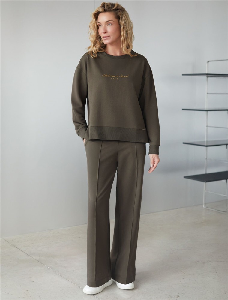 Плотность: 240 Г/м2 Стильный свитшот цвета хаки из премиального футера двухнитки с эластаном сочетает в себе комфорт и оригинальность. Джемпер выполнен из натурального хлопка, который обеспечивает мягкость и дышащие свойства ткани. Нежный материал дарит ощущение уюта в любое время года, а премиальное качество изготовления гарантирует долговечность и сохранение формы после множества стирок. Особенность изделия — спущенная линия плеча и аккуратные разрезы, которые добавляют современный акцент и делают образ более выразительным. Принт в виде надписи придает индивидуальность, позволяя выделиться без лишней вычурности. Перевод надписи Athleisure mood club - Клуб спортивного настроения. Дополнен металлическим логотипом бренда. Представлена широкая размерная линейка, включая маленькие и большие размеры, что позволяет подобрать идеальный вариант для разной фигуры и роста. Этот уютный свитшот отлично подходит для повседневной носки благодаря своей комфортной посадке и мягкой текстуре. Он станет универсальным элементом гардероба, легко сочетающимся с различными стилями одежды. Свободный джемпер из футера станет отличным выбором для активного отдыха, обеспечивая стильный внешний вид и удобство весной, летом или в прохладную погоду. Рекомендуем сочетать с артикулами: D44.135, D44.166 Комментарии к товару