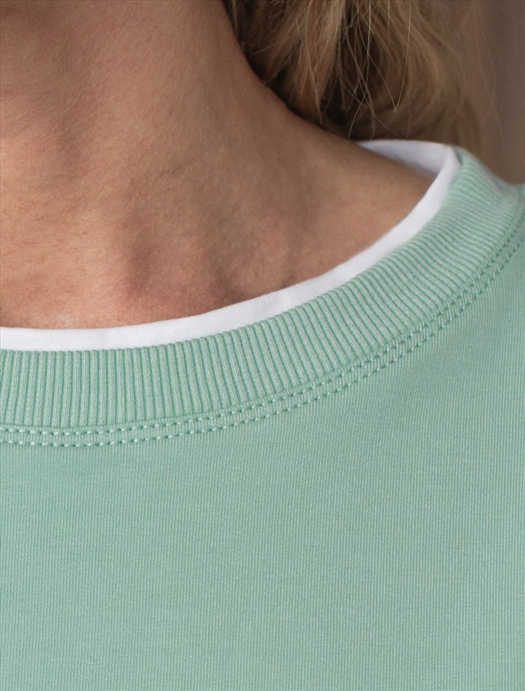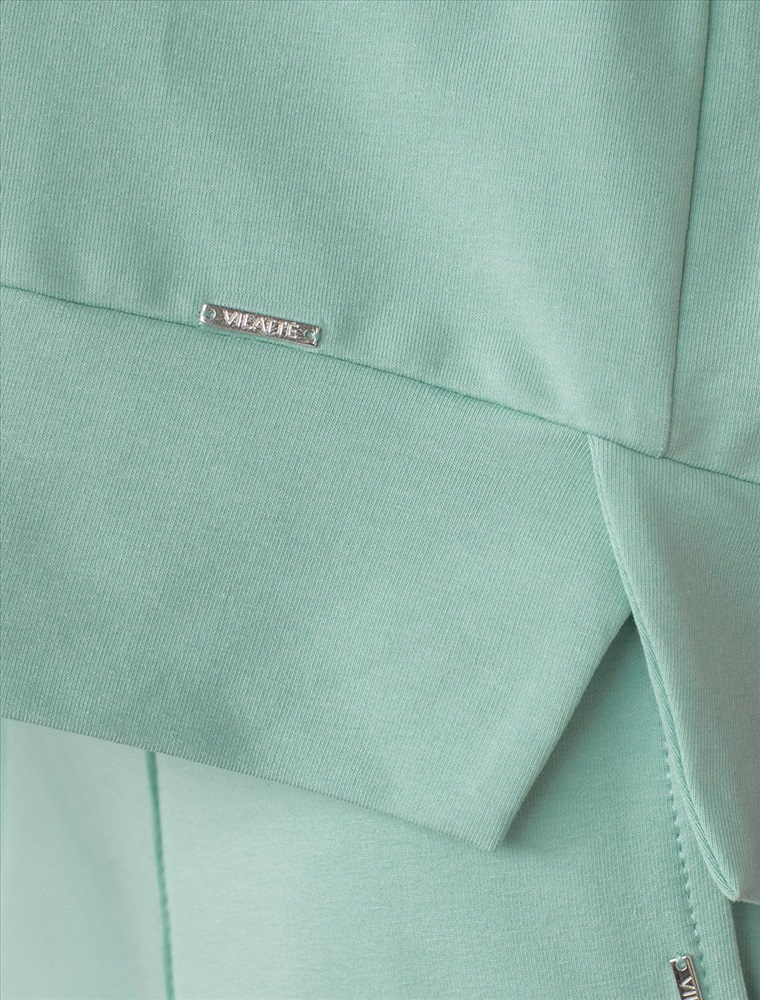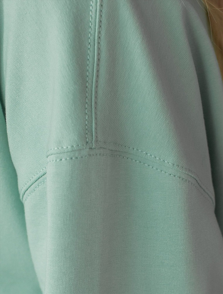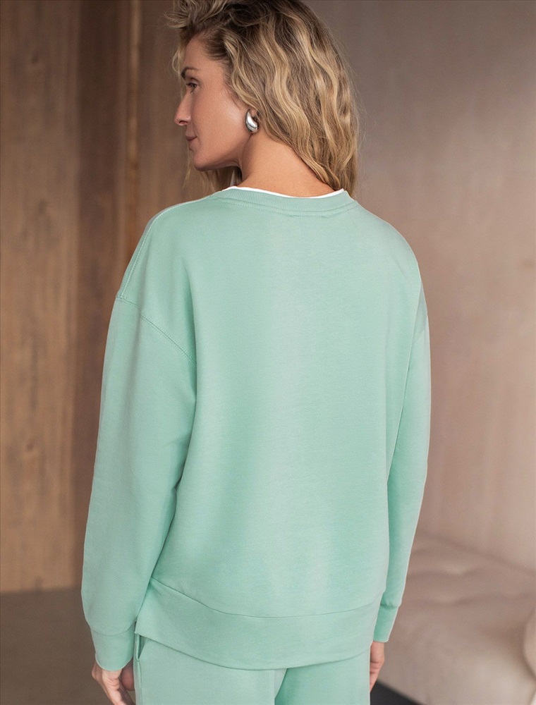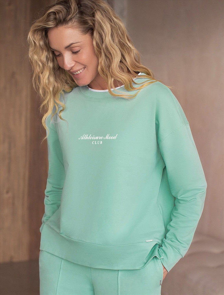 Плотность: 240 Г/м2 Стильный свитшот мятного цвета из премиального футера двухнитки с эластаном сочетает в себе комфорт и оригинальность. Джемпер выполнен из натурального хлопка, который обеспечивает мягкость и дышащие свойства ткани. Нежный материал дарит ощущение уюта в любое время года, а премиальное качество изготовления гарантирует долговечность и сохранение формы после множества стирок. Особенность изделия — спущенная линия плеча и аккуратные разрезы, которые добавляют современный акцент и делают образ более выразительным. Эффект имитации футболки в виде белой отделки на вороте делает дизайн динамичным и повышает градус стиля. Принт в виде надписи придает индивидуальность, позволяя выделиться без лишней вычурности. Перевод надписи Athleisure mood club - Клуб спортивного настроения. Дополнен металлическим логотипом бренда. Представлена широкая размерная линейка, включая маленькие и большие размеры, что позволяет подобрать идеальный вариант для разной фигуры и роста. Этот уютный свитшот отлично подходит для повседневной носки благодаря своей комфортной посадке и мягкой текстуре. Он станет универсальным элементом гардероба, легко сочетающимся с различными стилями одежды. Свободный джемпер из футера станет отличным выбором для активного отдыха, обеспечивая стильный внешний вид и удобство весной, летом или в прохладную погоду. Рекомендуем сочетать с артикулами: D44.135, D44.166 Комментарии к товару
